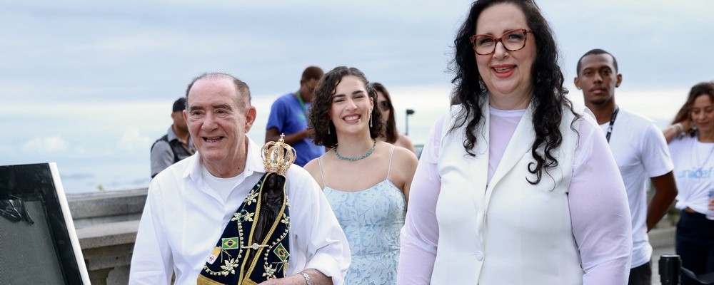 Renato chegou para a celebração com uma imagem de Nossa Aparecida nos braços, de quem é ...