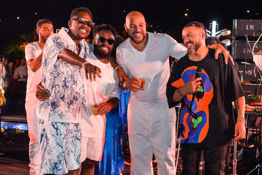 Vamos à festa? No convite, o texto dizia que tudo começaria às 15 horas. Às 16, o champagne Veuve Clicquot e o whisky John Walker Reserva Especial começaram a ser servidos e foram seguidos pela abertura do imenso bar de drinquetos que eram servidos de acordo com o gosto dos convidados. Haviam todos os drinques que vocês possam imaginar. Um espaço de carnes na brasa mais imensas mesas de comidinhas deliciosas. Os garçons passavam o tempo inteiro com iguarias maravilhosas e, em sua maioria, o camarão foi o fruto do mar que estrelou nas mais deliciosas e apetitosas bandejas. Querem saber mais? Eu conto. Em um certo momento, perguntei a um assessor do evento: “Essa festa vai longe, não é?” A resposta foi: “Daqui do deck os convidados irão para aquele espaço, me mostrando um toldo gigantesco, para uma rave, cheia de atrações, e o horário previsto para encerrar será às 7 da manhã”. Oi??? “E terão vários shows de artistas famosos”, completou ele. Confesso que fiquei animadíssimo e esperando tudo acontecer. Então, logo chega o aniversariante com look total Louis Vuitton, camisa e bermuda com estampa de grafismo azul e tênis Rivoli.