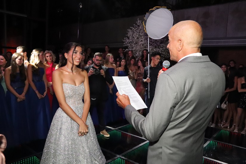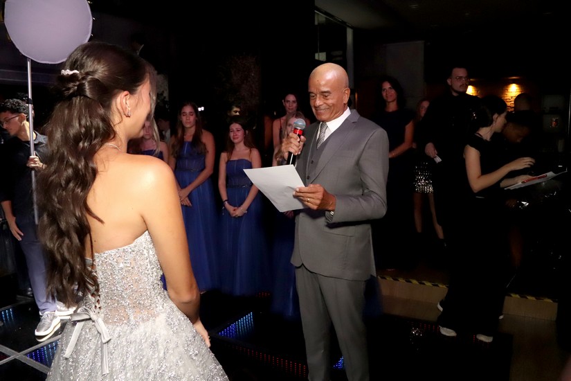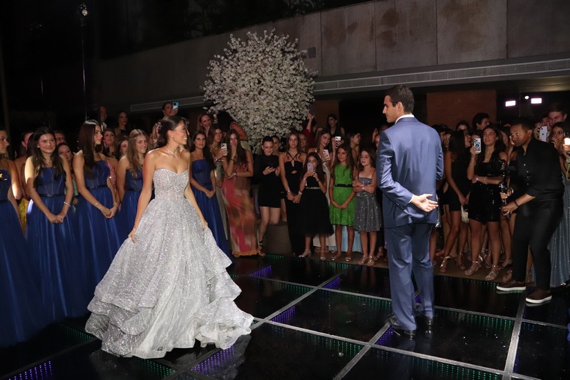 Momento de grande emoção, com a tradicional valsa, onde Valentina dançou com o pai Marcelo e com o príncipe Thomas Reichenheim e, claro, teve direito a discursos da mãe Francini, da irmã Marcella e do pai.