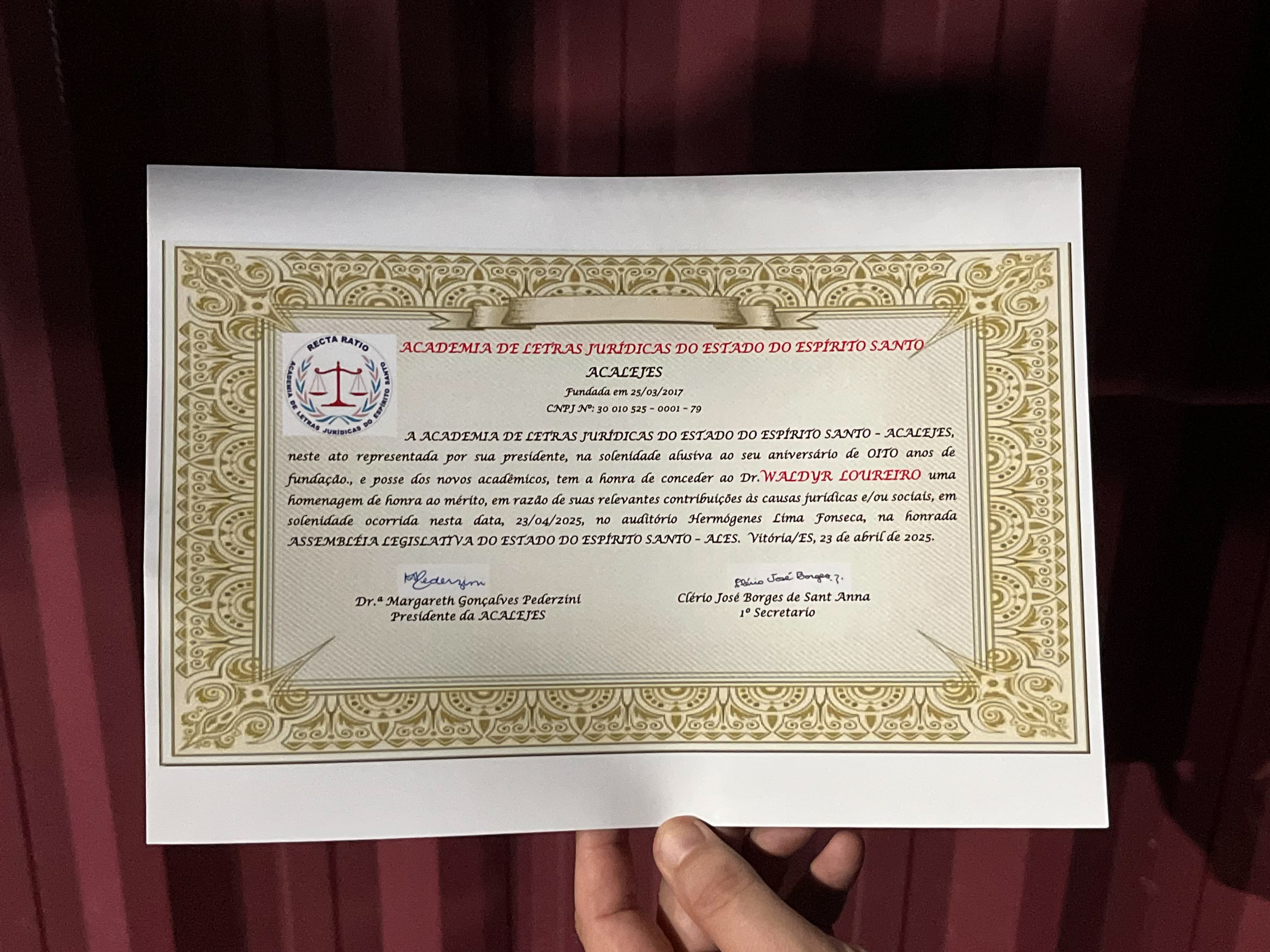 A dupla homenagem recebida pelo Dr. Waldyr Loureiro é um testemunho de sua dedicação, expertise e compromisso com a justiça e o bem-estar social. Sua trajetória profissional e sua produção literária representam um legado valioso para o direito e para a comunidade do Espírito Santo. A Academia de Letras Jurídicas e a Câmara Municipal de Vitória celebram, com justa honra, a trajetória de um profissional que faz a diferença.
