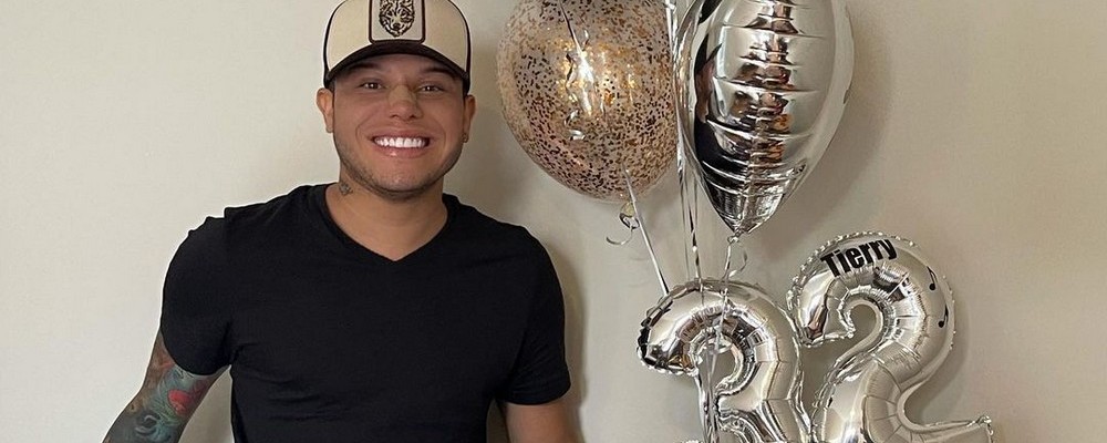 O cantor Tierry compartilhou com os mais de 5 milhões de seguidores a comemoração de seu aniversário de 32 anos. Uma mesa decorada com balões dourado, prata e preto ornamentavam o número 32 metalizado. No topo do bolo, três objetos estilizados que marcam a vida do aniversariante, a viola e o chapéu para seus shows e uma faca para o churrasco.