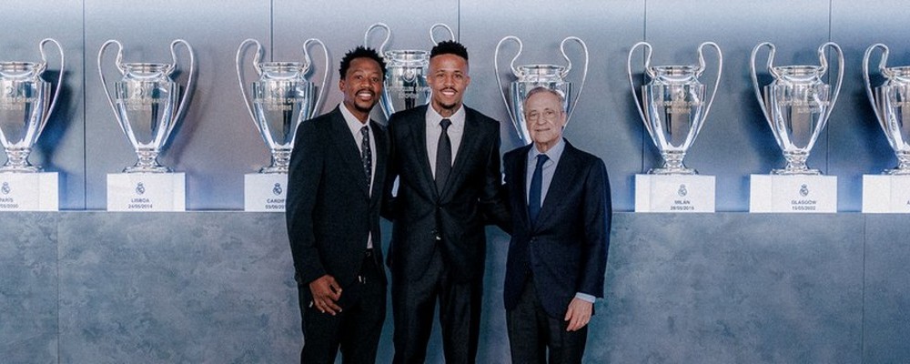 O jogador Éder Militão - na foto com seu agente Ulisses Jorge e o presidente do Real Madri, Florentino Perez - renovou contrato com o clube. O novo vínculo vai até junho de 2028, três anos além do que previa o acordo anterior, assinado quando chegou ao Santiago Bernabéu. O anúncio da renovação do zagueiro brasileiro de 26 anos foi feito pelo clube espanhol nesta ...