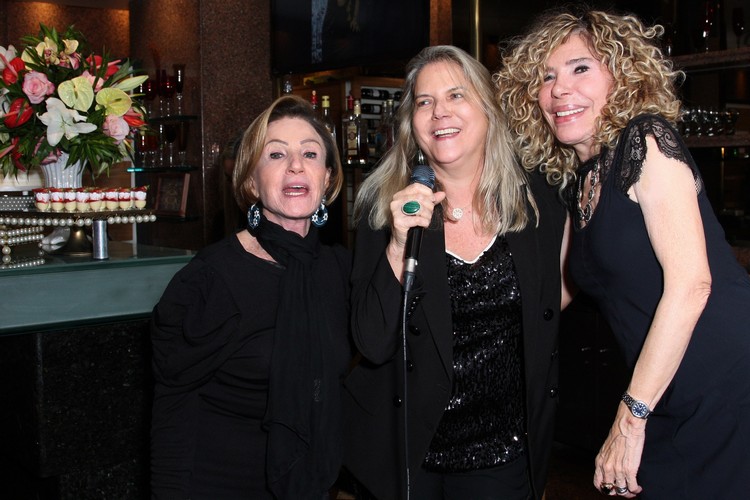 As amigas Maninha Barbosa, Sumaya Neves e Gilse Campos (na foto) prepararam uma festa surpresa para Ana de Paula em seu aniversário. O local escolhido foi o Alegretti no Copacabana Rio Hotel pela boa música e o alto astral. É lá onde Gilse canta, com Zé Maria acompanhando no teclado, todas às quintas. A lista de presente ficou por conta de Maninha, que escolheu uma joia assinada por Lea Nigri. O bolo foi presente de Glorinha Pires Rebelo e os docinhos da Bakegourmet. Tudo uma delicia! E como animação não falta para essa turma, todas cantaram em homenagem a Ana de Paula. Veja como foi nas fotos de Vera Donato.