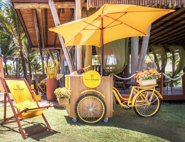 Ainda mais cool, o espaço está todo decorado com o tom da marca, o Yellow Clicquot, e conta com itens personalizados, como, almofadas, pufes e taças exclusivas de degustação. Os hóspedes que adquirirem garrafas de Veuve Clicquot, poderão ganhar o queridinho chapéu panamá da Clicquot e uma charmosa bolsa chutch. Confortáveis gazebos, também com decor da marca, deixam o ambiente ainda mais trendy.