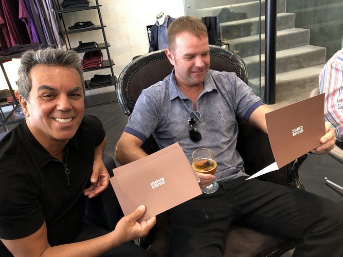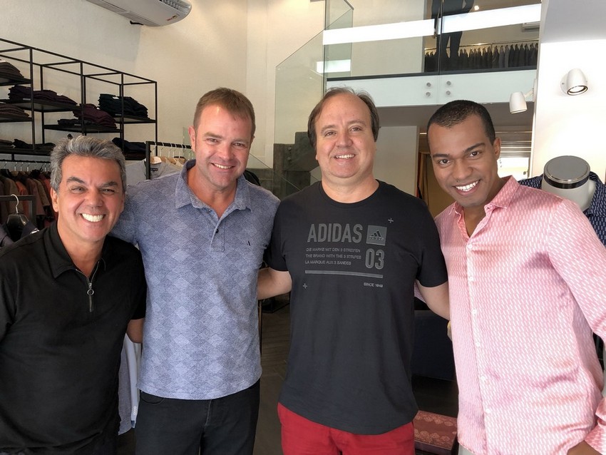 A Casa Ivan Aguilar é tão elegante que poderia estar em qualquer lugar do mundo! Mas não, está pousada no elegante número 259 da Rua Afonso Cláudio, na Praia do Canto, em Vitória. Bom para os capixabas que podem usufruir do bom gosto do criador de ternos elegantes, da alfaiataria impecável que, há anos, vem vestindo noivos, padrinhos, enfim, qualquer homem de bom gosto no Espírito Santo e estados vizinhos. Vestir um Ivan Aguilar é chique! E mostrar que está antenado com a moda, a tradição e a elegância. Quem esteve no último sábado para drinquetos e champã e ainda conferir as novidades da Casa Ivan Aguilar que também está vestindo mulheres, como Tania Cristina Teixeira da Cruz e seu arrasador vestido longo vermelho criado pela mestre Ivan para noite de casamento do filho Pedro Henrique, sabe! Tarde agradável com conversa boa num belíssimo ambiente criado para o conforto de seus amigos e clientes. Fotos Giovanni Albino