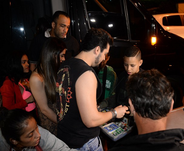 Luan Santana comemorou seu aniversário ontem, 20/03, reunindo amigos e familiares na Vila Mix de São Paulo. O cantor chegou acompanhado da namorada Jade Magalhães e, ao desembarcar da van, comprou três cartelas de Trident, pagou com uma nota de 50 reais e deixou o troco para o baleiro. Aproveitou o momento e posou com fãs que foram festejar.