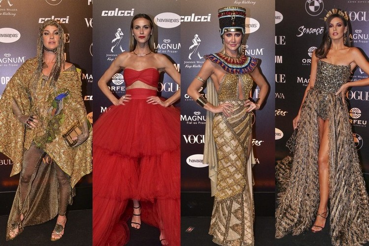 O tradicional Baile da Vogue não é apenas uma reunião de celebs é também um desfile de produções caprichadas, poderosas e luxuosas. Veterana na noite, a apresentadora Sabrina Sato usou um look multicolorido do estilista japonês Tomo Koisumi. Glória Maria, que dividiu o palco com Sabrina na apresentação, vestiu Martu. Ana Paula Siebert, ao lado de Roberto Justus, estava de Nefertiti com look assinado por Raquel de Queiroz. A bela Leticia Birkheuer vestiu Lino Villaventura e não poupou elogios ao estilista, “Me senti uma diva do cinema, voltei às passarelas como num toque de mágica, abduzida e maravilhada com este look icônico que você escolheu, especialmente para mim, nesta noite tão especial”. Renata Kuerten com vestido vermelho de Patricia Bonaldi, arrasando sempre. Camila Queiroz, ao lado de Klebber Toledo, se inspirou na ópera Carmem, com look assinado pela Forum. A modelo Diana Villas Boas, sempre linda, optou por um vestido dourado da estilista Leticia Manzan.