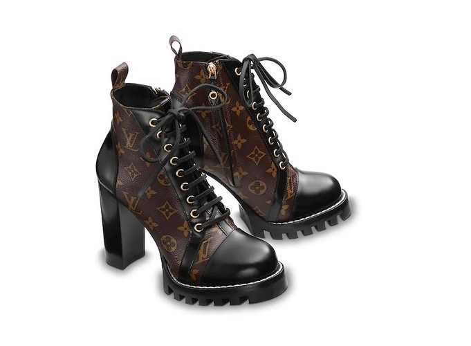 Em seu pocket show, na festa de lançamento do Verão 2020 do Grupo La Moda, Luisa Sonza caprichou no look. Ela usou a icônica bota Ankle Boot Star Trail toda em couro com cadarço, que, nesta coleção é reinterpretada no tradicional canvas Monogram. No site da marca, ela custa R$ 5.600,00.