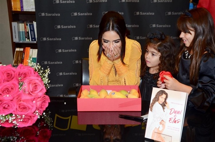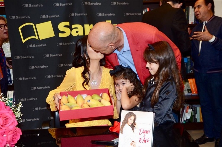 Acompanhado das filhas Alice e Antonella, Amilcare chegou com um enorme buquê de rosas vermelhas e uma surpresinha extra que emocionaram a autora. O trio levou, também, uma caixa de mangas-espadas, frutas que remetem ao passado de Dani em Dourados (MS), cidade natal dela, fazem Dani recordar a infância e a avó, cujas histórias estão nas primeiras páginas de sua obra.