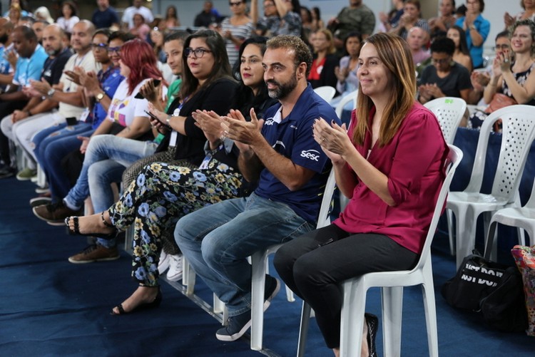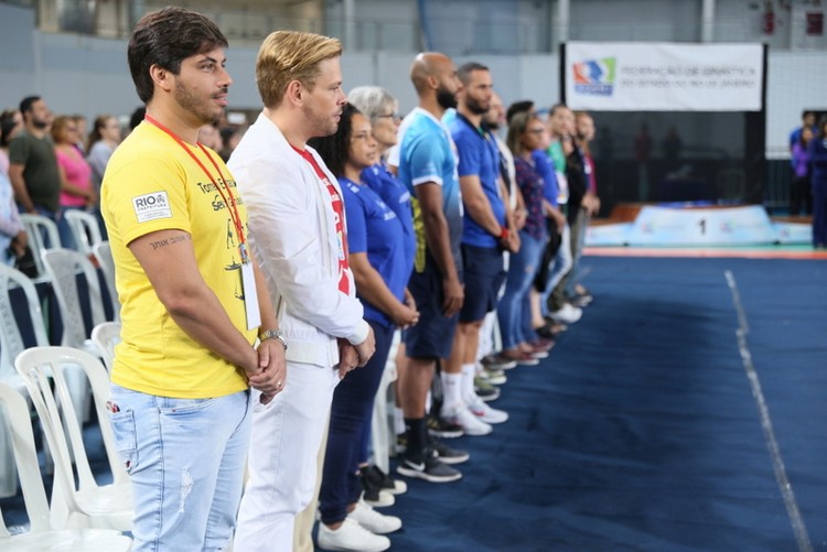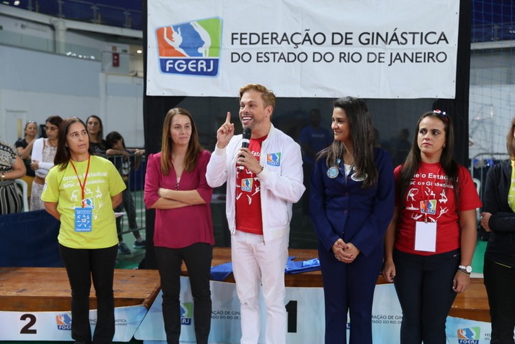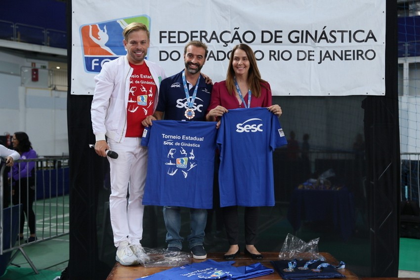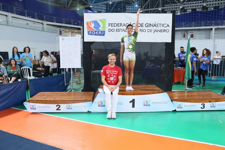 Com muita luta e dedicação, Bruno Chateaubriand, Patricia Amorim e Felipe Pereira (na foto), entre outros, realizaram o “Torneio Estadual SESC de Ginástica Artística” que recebeu 500 atletas de quatro modalidades, sendo três, olímpicas. O evento aconteceu na Arena Carioca 3, ontem, 25/05. Foi uma ação inédita da Federação de Ginástica do Estado do Rio de Janeiro juntar todas as modalidades em um só evento. Só mesmo o amor de Bruno, atual presidente da instituição, pela ginástica artística, para conseguir o engajamento de tantos em tão admirável feito.