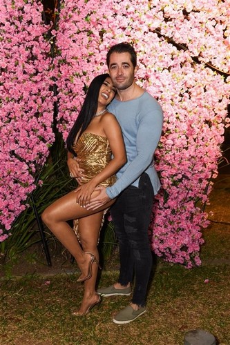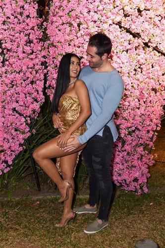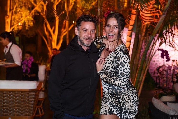 Este ano, Simária resolveu comemorar seu aniversário com festão. Intimou os colegas e coleguinhas para comemorarem seus 37 anos, ontem, 26/06, na casa Miracolli, no Jardins, em São Paulo. Simária chamou a atenção logo na chegada com o marido Vicente Escrig, vestia um modelo bem ousado, com decotão, look assimétrico e deixando parte do bumbum de fora. Mas foi logo avisando: “meu marido amou o vestido!” E para deixar os fotógrafos ainda mais ouriçados, trocou vários beijos com o marido em frente a um painel gigante de flores em forma de borboleta.