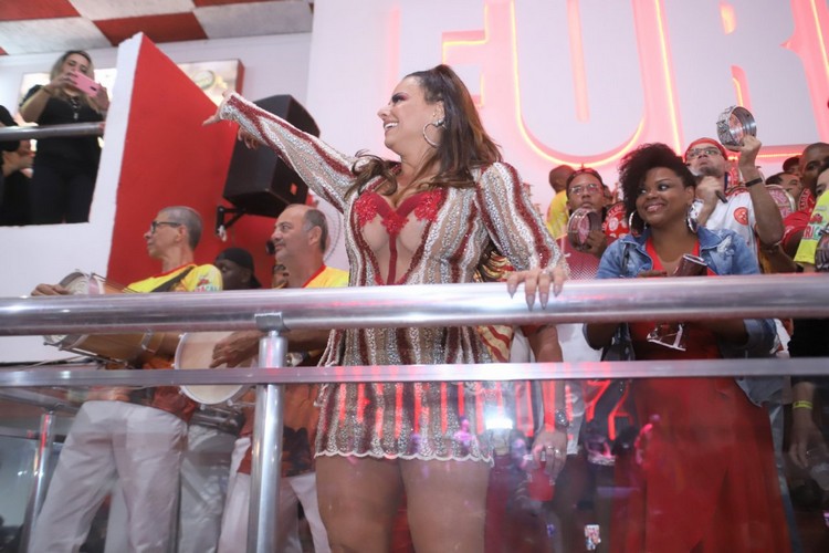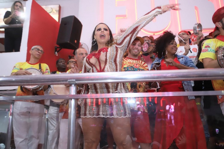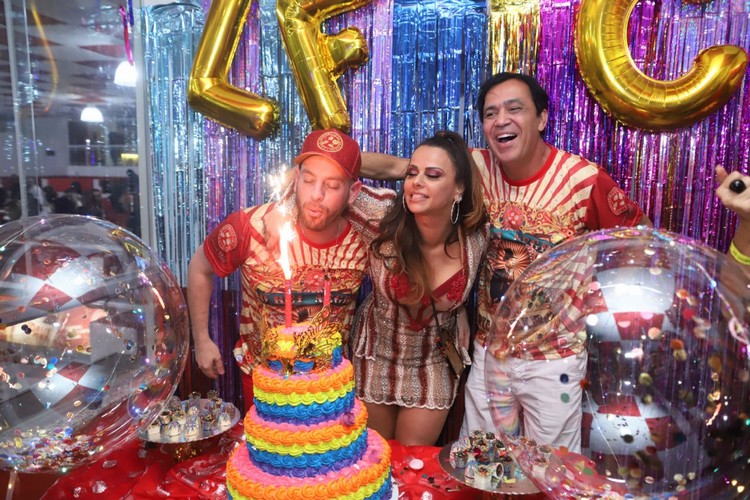 Vivianne Araujo aproveitou a noite de ensaio na quadra do Salgueiro, ontem, 03/08, para comemorar o aniversário do amigo figurinista Luiz Fernando Vianna. Também prestigiaram o evento a atriz Carla Cristina Cardoso que está no ar na novela "Bom Sucesso" da rede Globo, a repórter Adriana Bombom, a musa do Salgueiro Renata Santos e a musa da Viradouro. que também é assistente de palco do "Caldeirão do Huck", Luana Bandeira.