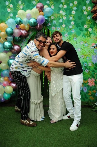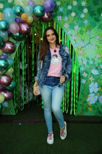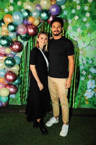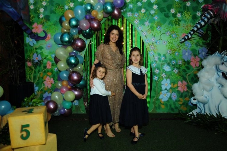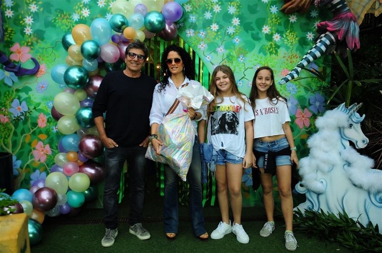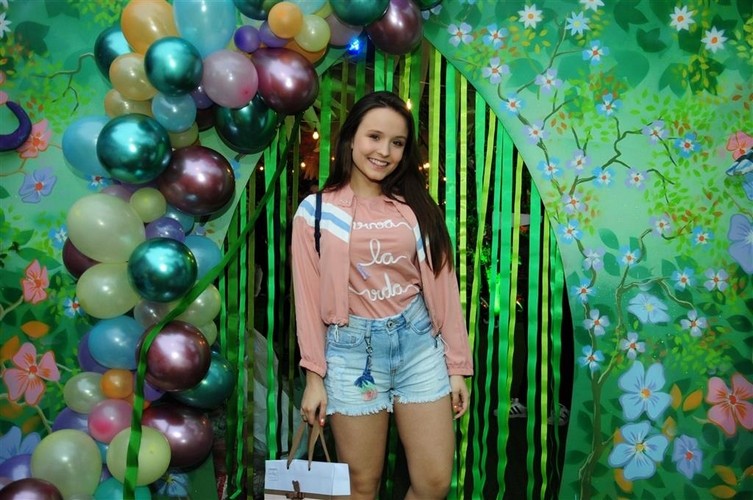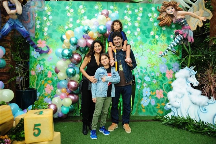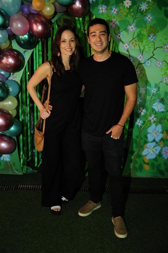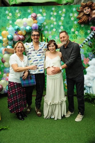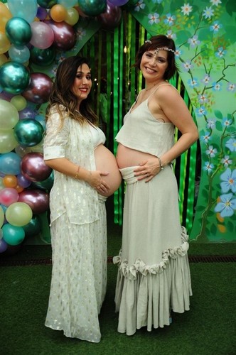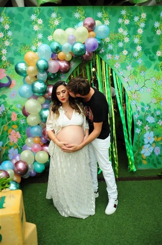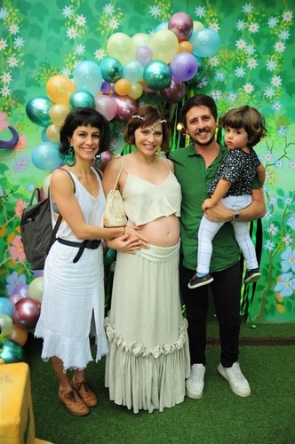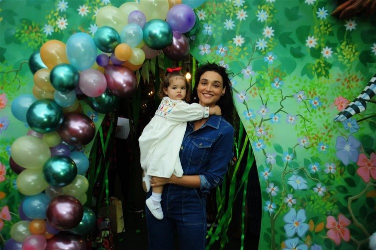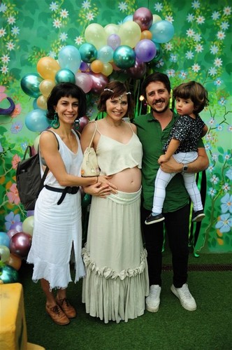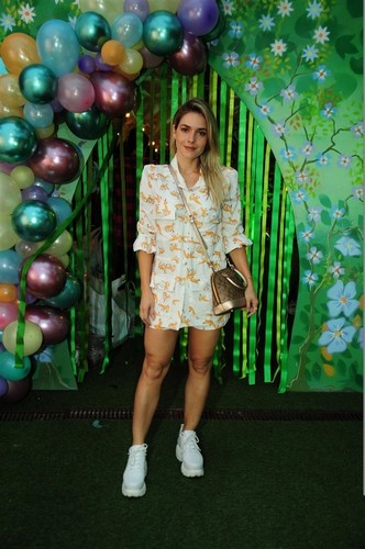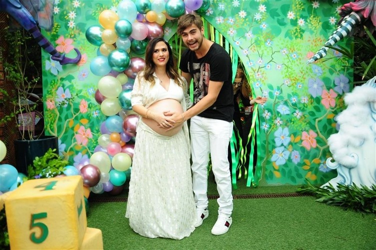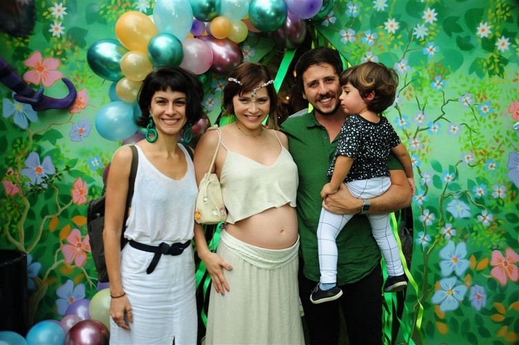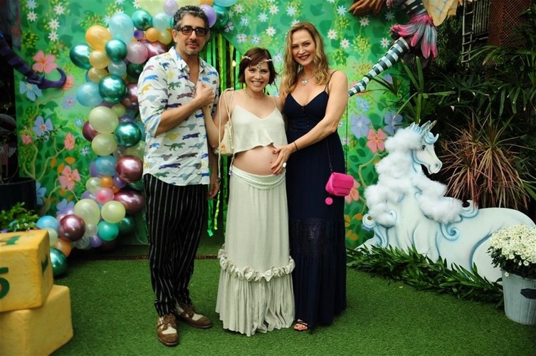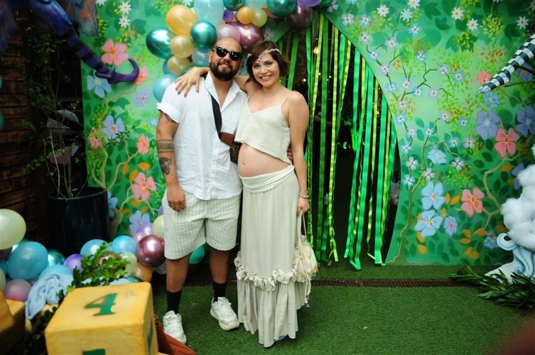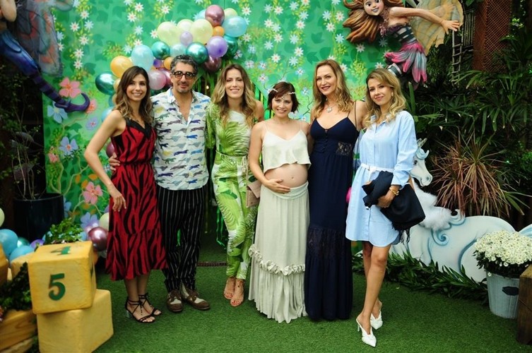 A festa, teve tema inspirada no universo das fadas e dos duendes, com uma decoração lúdica, cheia de tons de verde, bichinhos de pelúcia e muitas flores, organizada pela Roberta Niemeyer Produções. Ambas as atrizes usaram looks que combinavam top e saia longa, nesse clima relax, deixando as barriguinhas de fora.