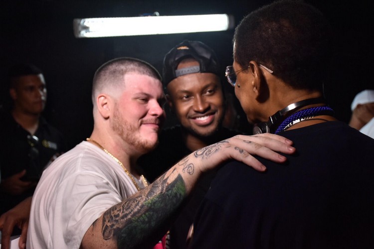 Após suas respectivas apresentações no palco principal do evento, os cantores foram conferir o show da banda Fundo de Quintal. No backstage, enquanto tinham uma conversa intimista, os cantores Thiaguinho e Ferrugem se emocionaram, ficando com os olhos em lágrimas.