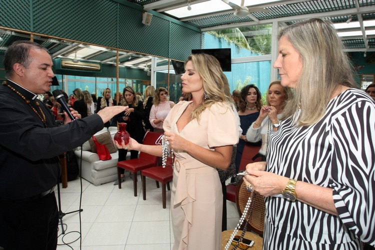 Acostumada a planejar e realizar eventos, Ana Paula Barbosa cuidou de cada detalhe para que suas mais de 200 convidadas tivessem uma tarde incrível. A anfitriã recebeu uma a uma e com o quórum completo deu início à comemoração com um agradecimento à vida. Convidou o Padre Marcelo Araújo para um momento de oração.