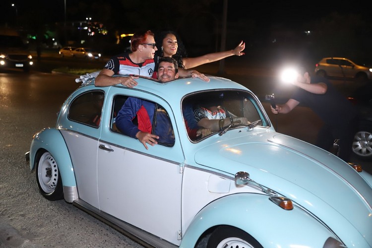 Rodrigo Pica-Pau (vocalista), E.J. (guitarra, solo e violão), Jonas Café (baixo), Serginho (guitarra, base e violão) e Dolabella (bateria) chegaram a bordo de um fusca azul igual ao que foi usado nas gravações do clipe de “Bom Bom”, já para esquentar os convidados, que vibraram com os músicos. “Nosso lema é a diversão, até porque a vida é muito breve para ser levada sempre tão a sério”, disse Rodrigo Pica-Pau.