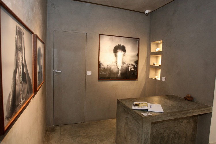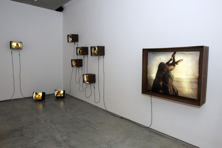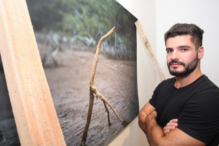 Logo na entrada a instalação na vitrine feita em couro tensionado chamava atenção, assim como os objetos escultórios e fotografias do artista que têm como fio condutor sua pesquisa que culminou em uma tese de doutorado em artes pela Universidade Estadual do Rio de Janeiro (UERJ) sobre duas danças de combate africanas: a Ladja, praticada na Ilha da Martinica, e Laamb, do Senegal - que muito se assemelham a brasileira Capoeira.