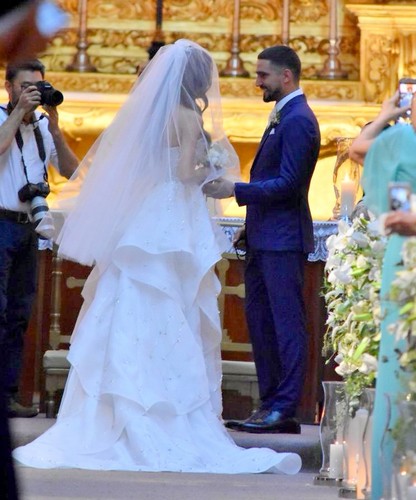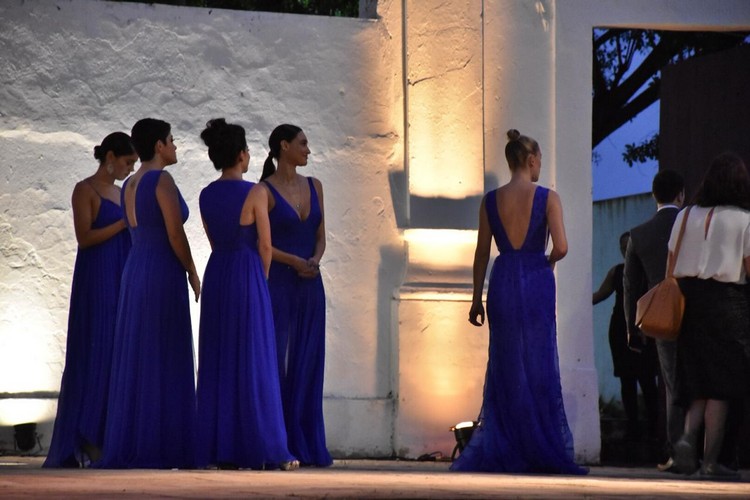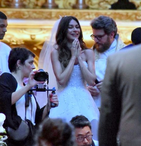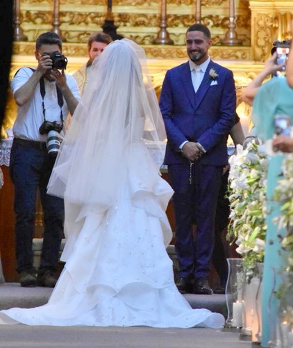 Azul foi a cor escolhida para as roupas das madrinhas, entre elas, Júlia Faria, Fiorella Mattheis e Sophie Charlotte, Débora Nascimento e Carol Sampaio. A canção "Love You", de Malu Magalhães, foi um pedido especial da atriz para a orquestra Bravo tocar no templo católico.
