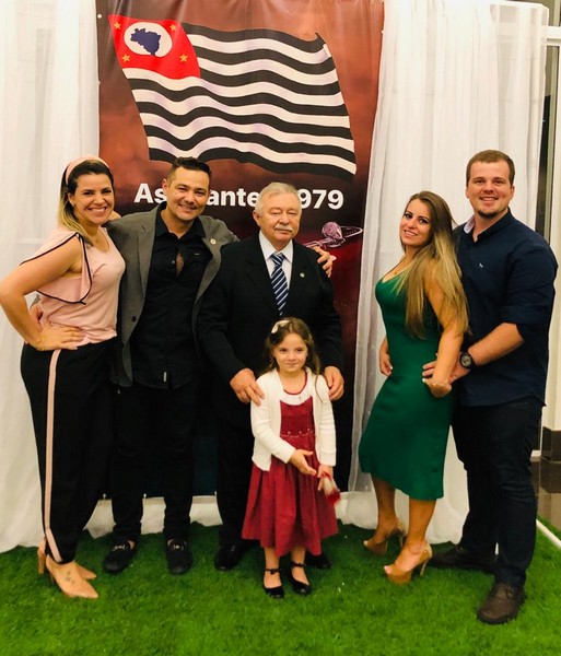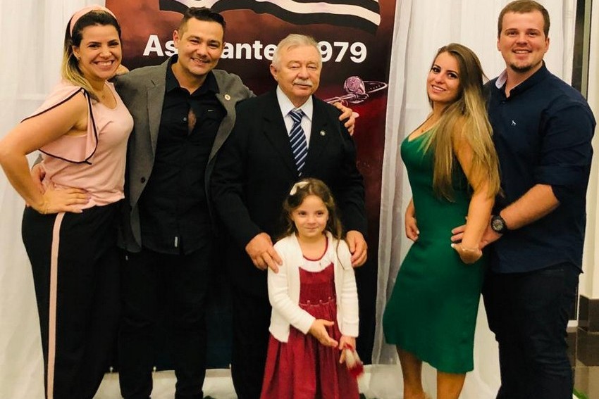 Na foto, Sr. José Everaldo com os filhos Douglas e Juliano, as noras Denise e Lilian e a lindinha neta Lorena, que é filha do vocalista da Fortunia.