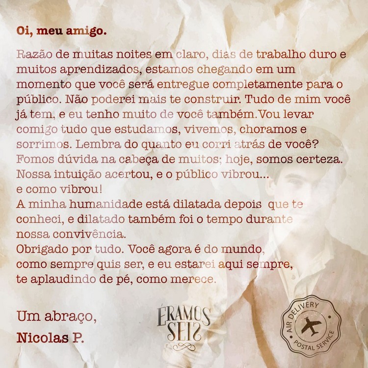 Taí, quando eu pensava que ele já havia me mostrado tudo, veio o “Alfredo”. Poxa, esse personagem vai ficar marcado na sua carreira Nicolas. Bravo, bravíssimo! E obrigado por nos presentear com mais uma interpretação espetacular, meu jovem grandioso ator. Valeu por momentos tão intensos. Vaaaiiiii que o mundo é seu!