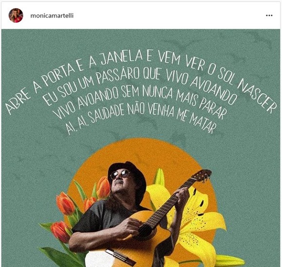 Monica Martelli: Moraes era sinônimo de festa e alegria. Lindas composições que acompanharam minha vida!! Será eterno! 🤍”