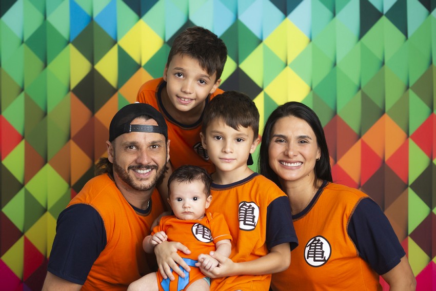 Palmeirense, Tato fez questão de fotografar o filho mais novo com a roupa do time do coração, de pirata, e vestiu toda a família de Dragon Ball, série japonesa que os filhos mais velhos são fãs. “A vinda de Zion, nosso terceiro filho, mexeu demais com a nossa família... Achávamos que já estávamos “calejados” por termos dois filhos e que tudo seria mais “normal” , mas não foi o que aconteceu. Zion mexeu com as nossas estruturas e mostrou que nossa maturidade também nos trouxe mais valorização da vida e do milagre do nascimento. Estamos em êxtase ainda!”, comenta o artista, que explica as roupas usadas no ensaio. “Eles amam Dragon Ball e eu amo o Palmeiras! (risos) Assim eles tentam me passar um pouco das coisas que eles gostam e eu me certificar de que eles sejam Palmeirenses! (risos)”.