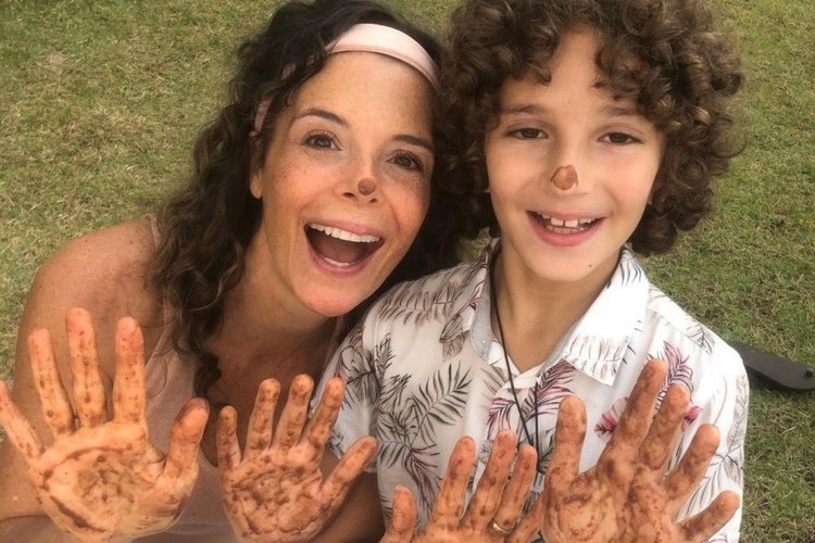 Mylla Christie, mãe do Tuttinho. “Ser mãe é estar sempre presente dando amor, carinho e apoio sempre! Na foto, a gente com leite chocolate vegano de avelã natural sem conservantes. Fizemos um vídeo de como fazer leite vegetais! Eu me preocupo muito com a saúde e alimentação dele!”