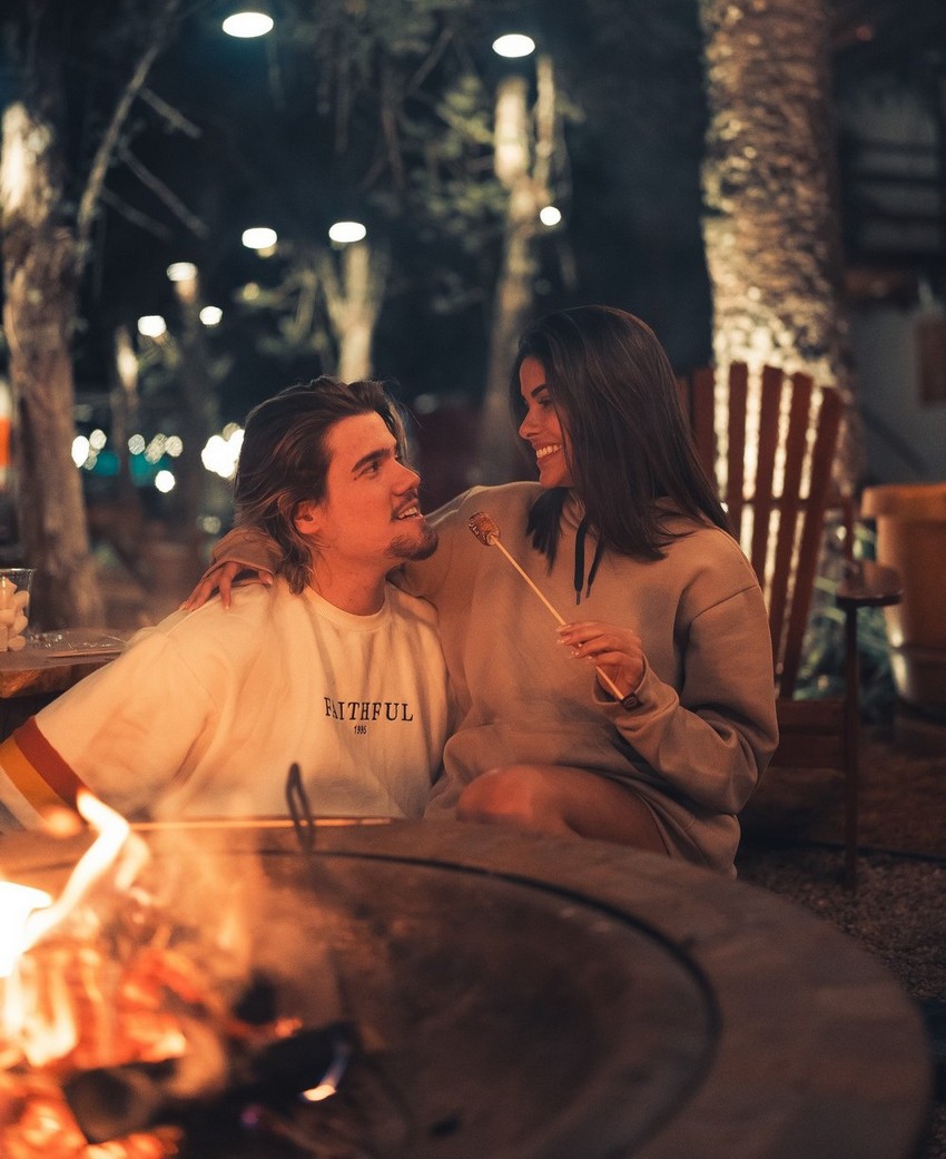 Caio e Munik escolheram um dos trailers exclusivos disponibilizados pelo hotel, além de terem uma fogueira só para eles, o que tornou a experiência única. As fotos foram feitas dentro e fora do trailer, aproveitando os momentos de lazer do casal, que está junto há 2 meses e meio. “Estamos muitos felizes e numa vibe muito gostosa, estamos aproveitando esses dias bem juntos, está sendo incrível. A Munik é uma mulher maravilhosa” diz Caio.