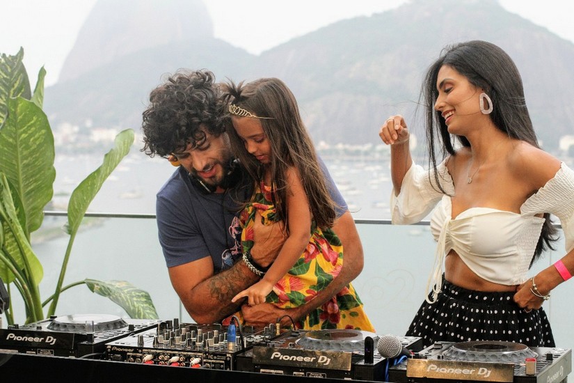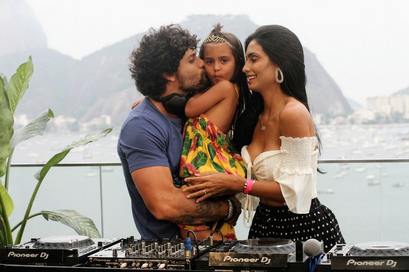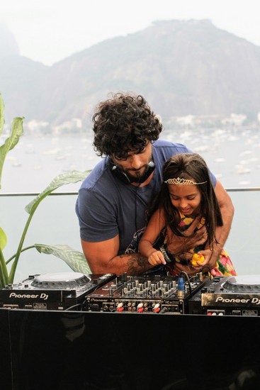 Jesus Luz estava muito bem acompanhado. Além da mulher Carol Ramiro e da filha Malena, que curtiram cada momento, também teve a participação da mãe Cristiane Regina que ensaiou umas mixagens e também participação do cantor, compositor e DJ Shia. Tudo com a apresentação da elétrica Adriana Bombom.