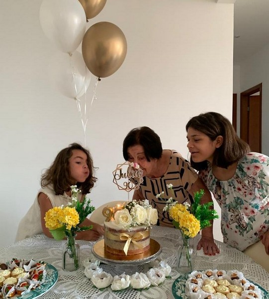 A família Carneiro Mendonça em comemoração! Afinal, a matriarca, D. Júlia, está completando 90 anos cheia de alegria e saúde. D. Júlia sempre esteve ao lado do marido, o saudoso empresário Floriano Mendonça, desde os primeiros passos de sua vitoriosa história empresarial como fundador do Grupo Planeta. Religiosa, sempre incentivou o marido em suas incontáveis ações sociais. Seu Floriano dedicava um bom tempo à filantropia, principalmente com os idosos, com grande contribuição na construção e manutenção do Avedalma em Cariacica e com as crianças, no Lar Irmã Sheila, em Colatina. D. Júlia é mãe de Floriano e Peinha Mendonça e avó de Sophia, Florianinho e Laura. A comemoração foi restrita à família com um bolinho e muito amor! Felicidades querida D. Júlia! Muita alegria, paz e saúde. A senhora merece tudo isso é muito mais!