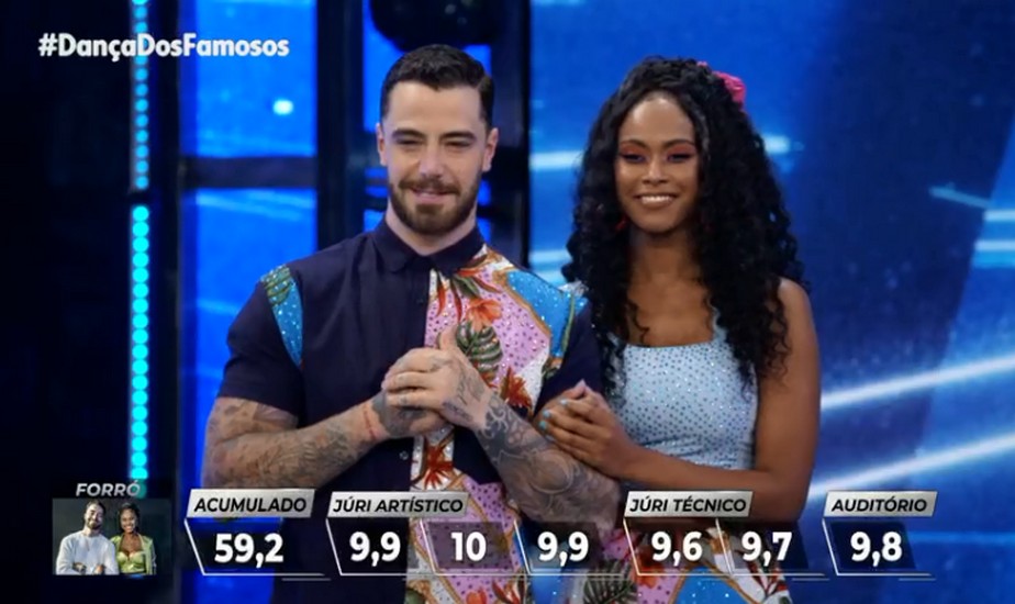 Inês Bogea finalizou com sua nota "Parabéns, foi muito bacana ver você se entregar a essa dança. Quando você está junto, preste um pouco a atenção na posição do seu corpo em relação a ela. Dê espaço pra ela movimentar as pernas para ficar mais suave esse encontro. Mas você foi muito cuidadoso em todas as pegas, então está de parabéns. A minha nota é 9,7"