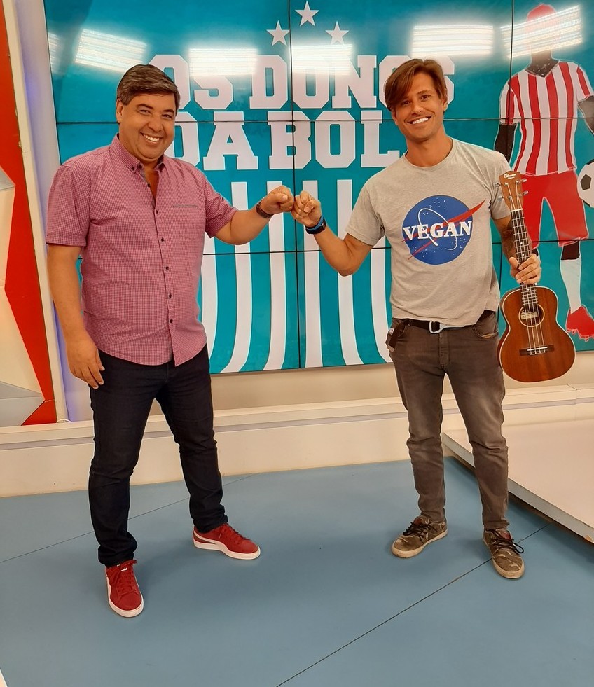 O ator ainda interagiu com os comentaristas Renée Simões, Leonardo Baran e Ronaldo Castro comentando sobre o campeonato brasileiro.