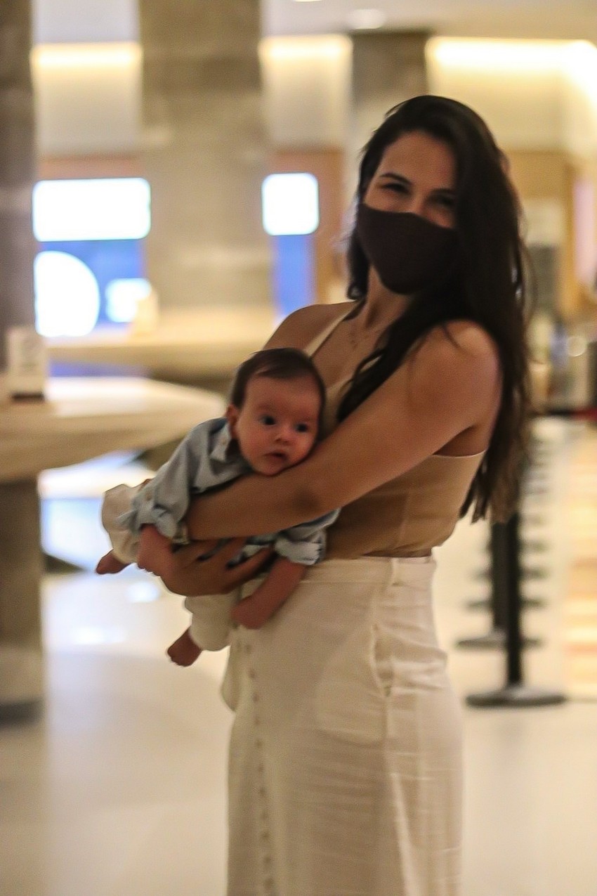 Malvino Salvador e Kyra Gracie passearam com as filhas, Ayra, de 6 anos, Kyara, de 4 e o bebê Rayan de 2 meses num shopping da zona oeste do Rio de Janeiro. As meninas esbanjaram fofura ao posar para câmera do paparazzo.
