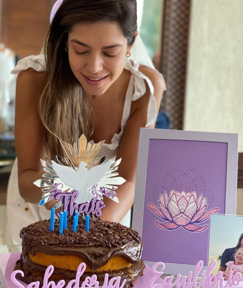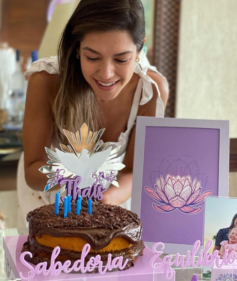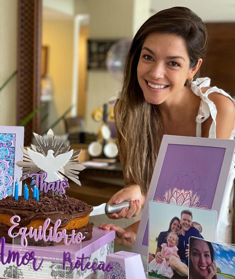 Thais Fersoza teve uma deliciosa surpresa hoje pela manhã preparada pelo amado Michel Teló. Ela completa 37 anos de idade nesta terça-feira, e uma linda mesa toda decorada com bolo e doces a esperava. A decoração, nos tons de roxo, teve como tema "Equilíbrio e Sabedoria".