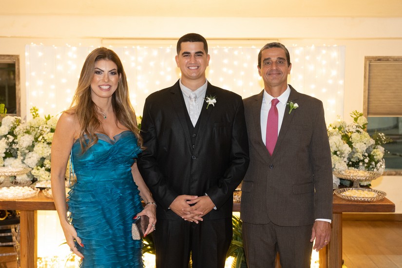 Depois do casamento civil, aconteceu a celebração. O pastor Frank Almeida fez uma emocionante oração. Sua mulher Bernadete estava presente. Os noivos escolheram para padrinhos os Dórea, Victor, Enzo, Davi e Marcelo, além de Enzo Bernardes, Matheus Almeida, Henrique Mendonça e José Carlos Silva que está com a família há mais de 40 anos e é muito querido por todos. O tom escolhido para as madrinhas foi o rosa. Lina Dórea, Rebeca Faioli, Ligia Pessotti, Beatriz Rocha, Debora Souza, Brena Agne, Mariana Rodrigues e Ana Luiza Anholeti faziam parte desse time de belas. A demoiselle d'honneur foi a linda Maria Fontenelle Dórea.