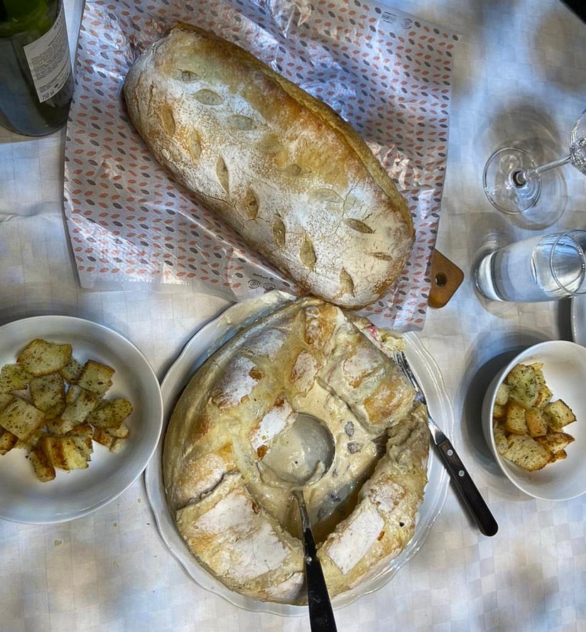 O chef Marquinhos fez questão de assinar o menu da noite que teve fondue de 7 queijos com iscas de mignon dentro do pão artesanal maravilhoso do Rancho do Joaninha.