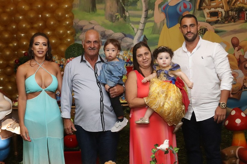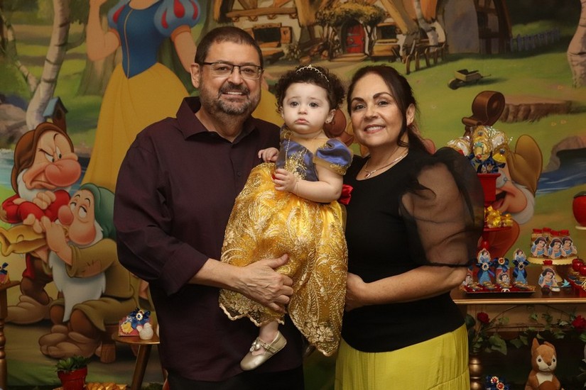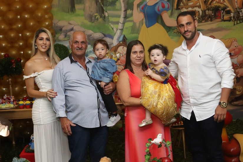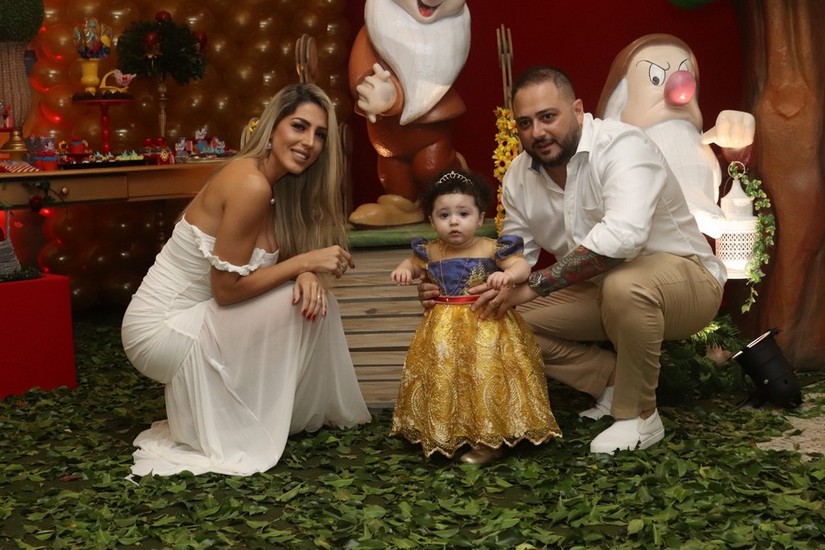 A linda Sophia chegou vestida de Branca de Neve com os pais Juliana Mulinario e Odilon Nicchio Neto para ser a personagem principal da noite. Chegou como uma princesa e curtiu cada pedacinho da floresta. Tirou muitas fotos, foi no colo dos avós e dos padrinhos, correu, ou quase isso, brincou, se divertiu. Assim como o personagem da fábula, sua doçura encanta.