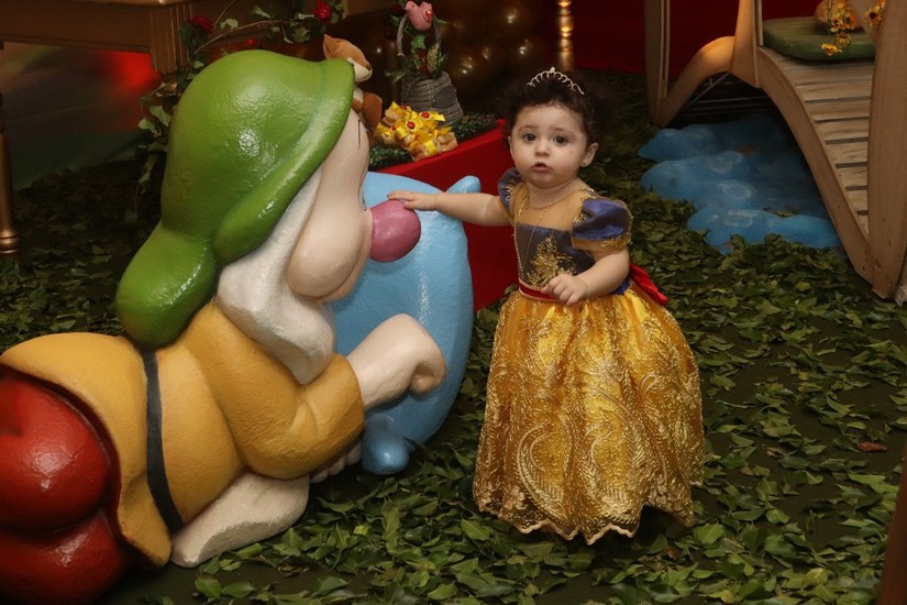 O aniversário de um ano de Sophia Mulinario Nicchio foi cercado de personagens de um clássico da literatura infantil, Branca de Neve e os Sete Anões. Logo na chegada do cerimonial Fábrica de Sonhos, a ambientação de floresta com o personagem da rainha e o cesto de maçãs, o espelho mágico, levavam as crianças para se imaginarem no conto de fadas.