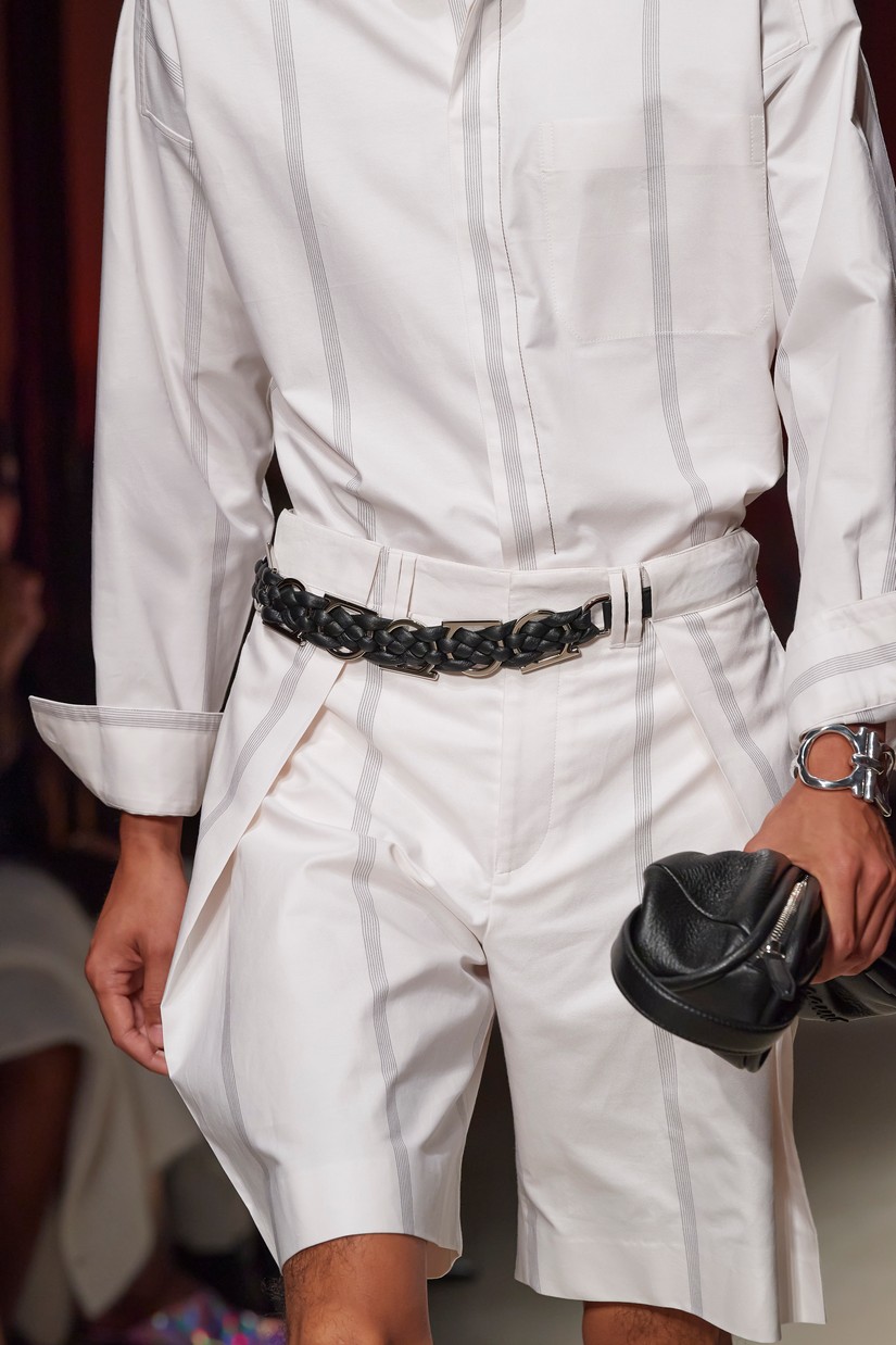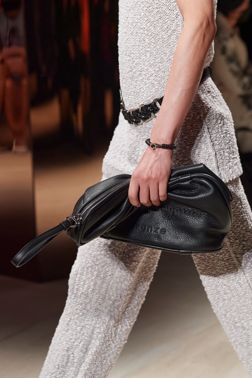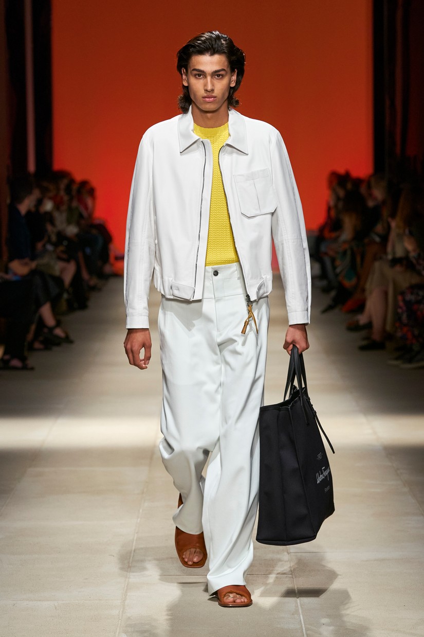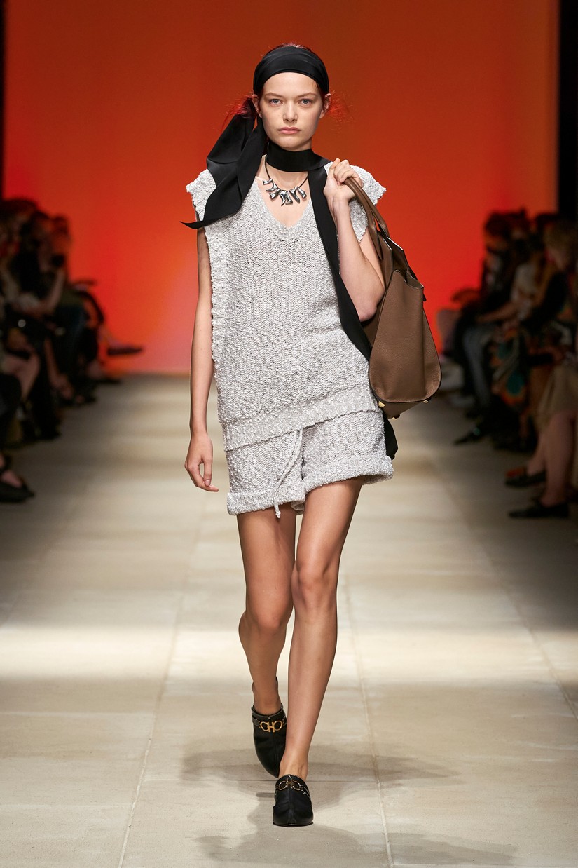 Decorativamente, a marca escavou os seus arquivos para transformar positivamente os estereótipos desgastados - tais como a impressão tigrada - e para prosseguir com o mantra de saturação-refusão da Ferragamo. Um exemplo específico disto é a colaboração com o artista parisiense Julien Colombier, que vê um foulard floral Ferragamo dos anos 70 estampado em jacquard de listras de tigre soltas, ou totalmente bordado usando uma técnica antiga e tipicamente italiana. Separados com cores impecáveis em malha e jersey, por vezes com franjas, são usados com liberdade. As confecções tácteis e texturizadas combinam algodão e seda, lã e linho, e cânhamo.