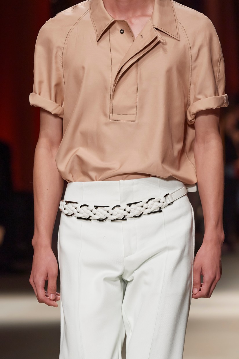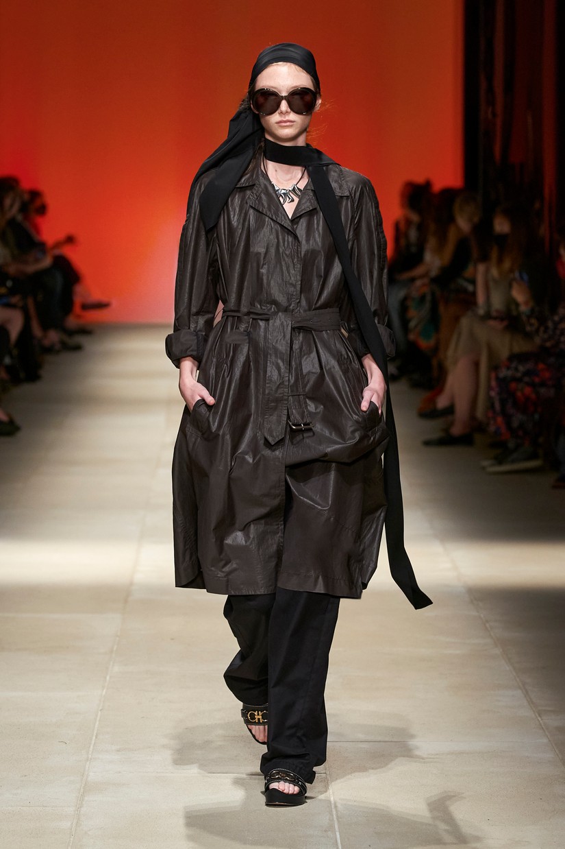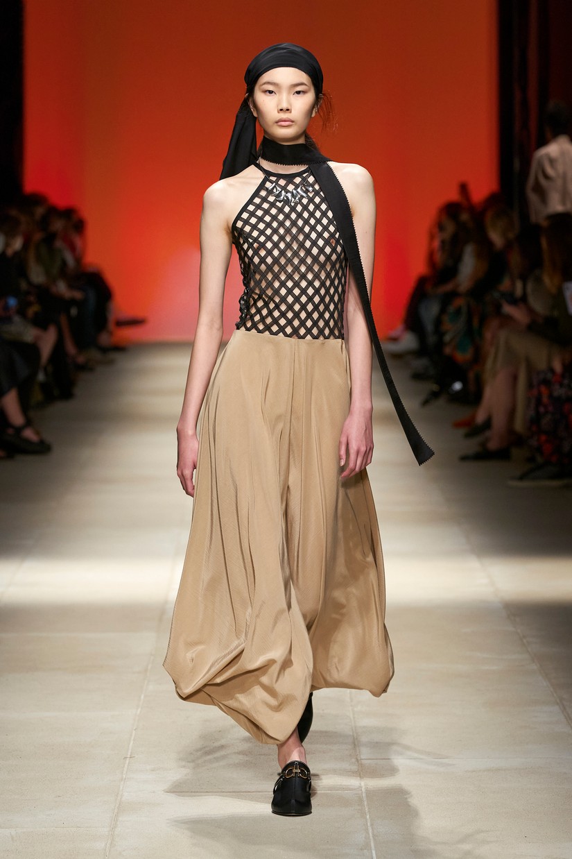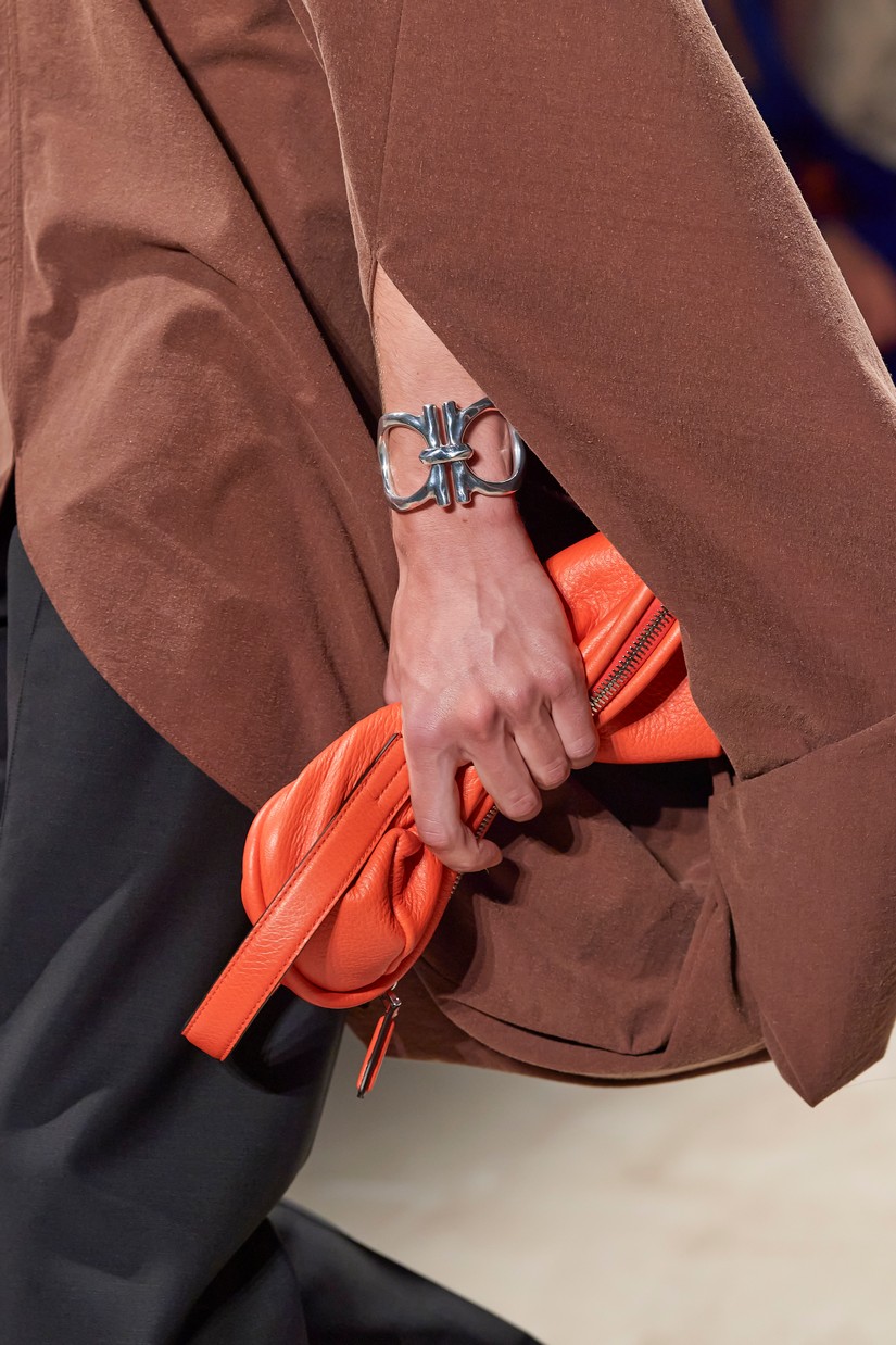 Decorativamente, a marca escavou os seus arquivos para transformar positivamente os estereótipos desgastados - tais como a impressão tigrada - e para prosseguir com o mantra de saturação-refusão da Ferragamo. Um exemplo específico disto é a colaboração com o artista parisiense Julien Colombier, que vê um foulard floral Ferragamo dos anos 70 estampado em jacquard de listras de tigre soltas, ou totalmente bordado usando uma técnica antiga e tipicamente italiana. Separados com cores impecáveis em malha e jersey, por vezes com franjas, são usados com liberdade. As confecções tácteis e texturizadas combinam algodão e seda, lã e linho, e cânhamo.