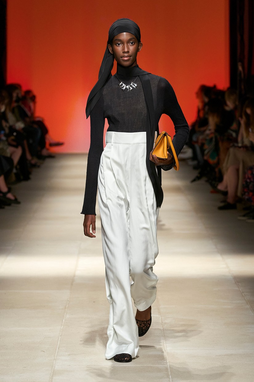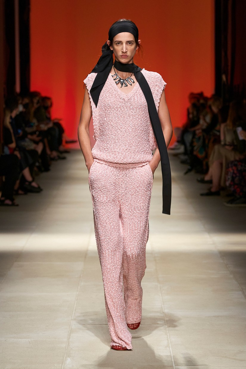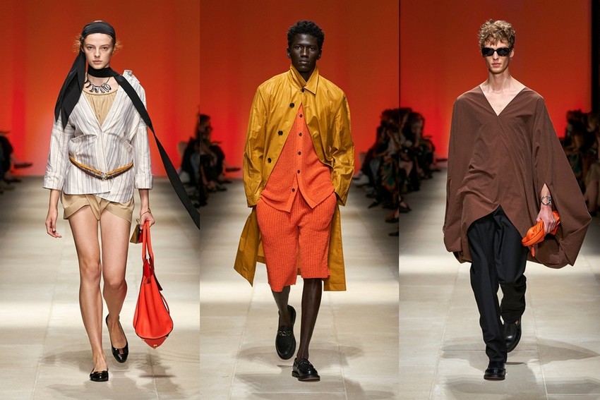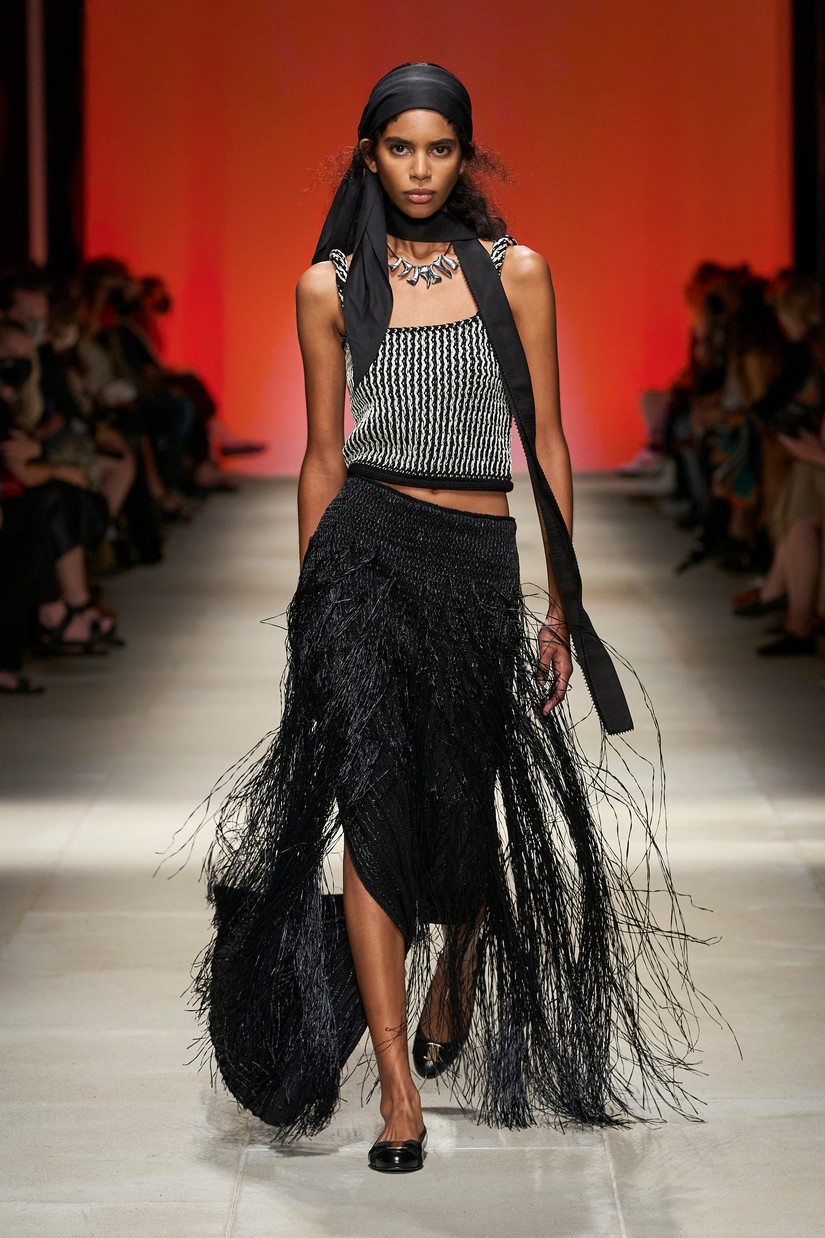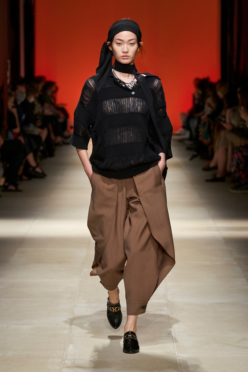 Decorativamente, a marca escavou os seus arquivos para transformar positivamente os estereótipos desgastados - tais como a impressão tigrada - e para prosseguir com o mantra de saturação-refusão da Ferragamo. Um exemplo específico disto é a colaboração com o artista parisiense Julien Colombier, que vê um foulard floral Ferragamo dos anos 70 estampado em jacquard de listras de tigre soltas, ou totalmente bordado usando uma técnica antiga e tipicamente italiana. Separados com cores impecáveis em malha e jersey, por vezes com franjas, são usados com liberdade. As confecções tácteis e texturizadas combinam algodão e seda, lã e linho, e cânhamo.