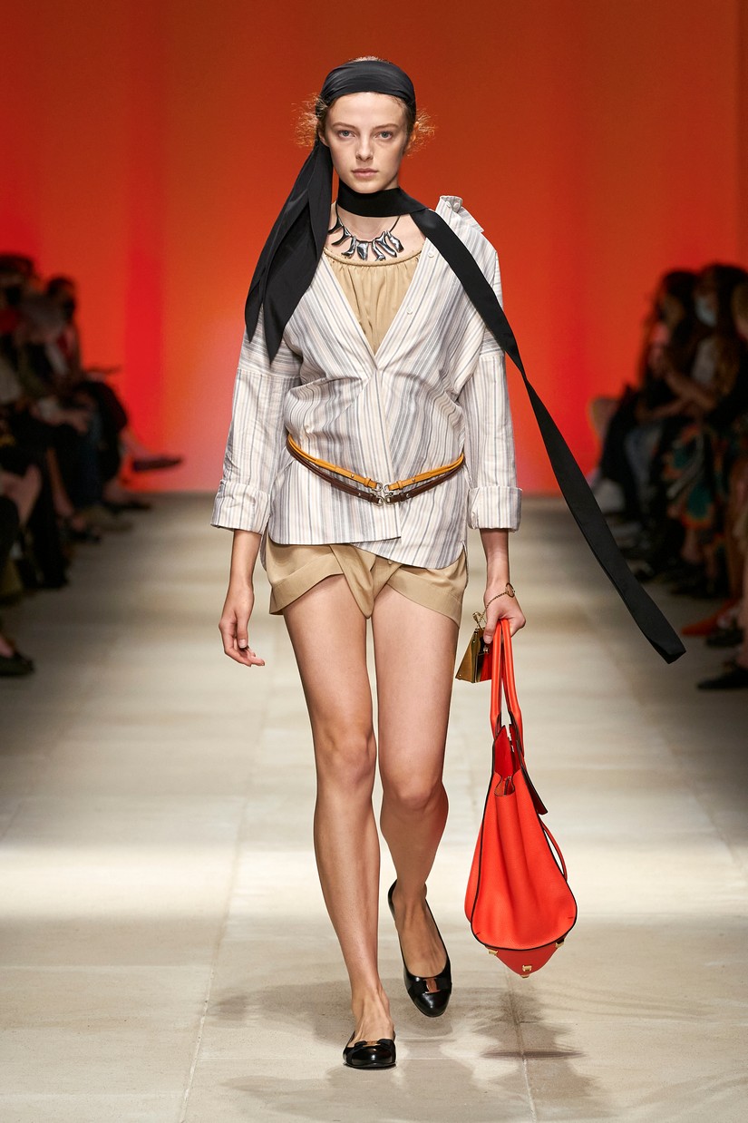 O interior histórico da Rotonda Della Besana foi transformado num espaço de reflexão e reconexão. Paredes e colunas espelhadas permitiram tanto aos modelos como ao público, ver os olhares de todos os ângulos e, abraçar a alegria e a sensualidade visual do vestir. Isto, por sua vez, reflete um dos prazeres definidores do calçado – o de todos os objetos usados, o sapato é o mais fácil e frequentemente apreciado pelos nossos próprios olhos sobre o nosso próprio corpo: os sapatos nos permitem ver a nós mesmos. O espaço do desfile tornou-se um ponto de otimismo, um ponto de apoio para a autoestima e o reencontro com o mundo que nos rodeia, e o nosso lugar dentro dele.