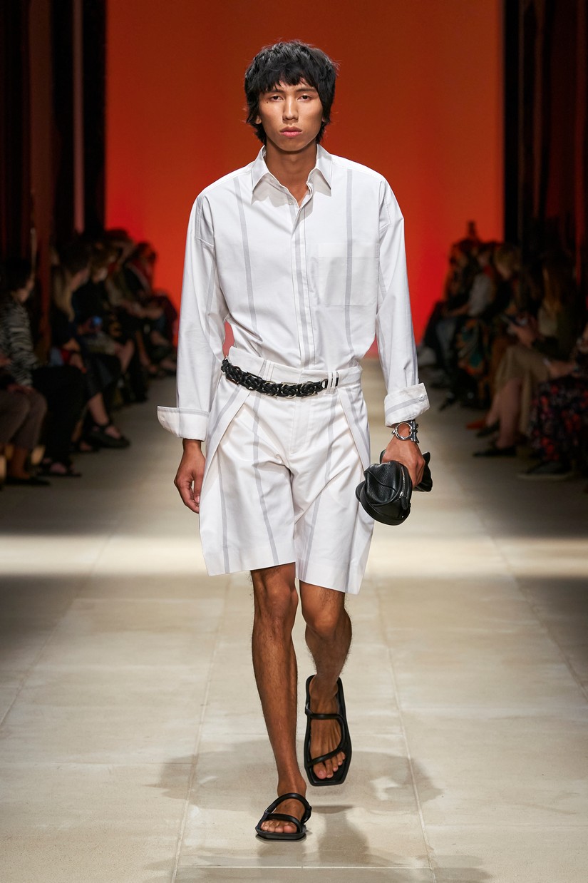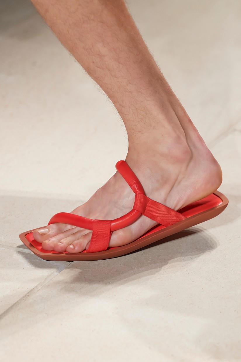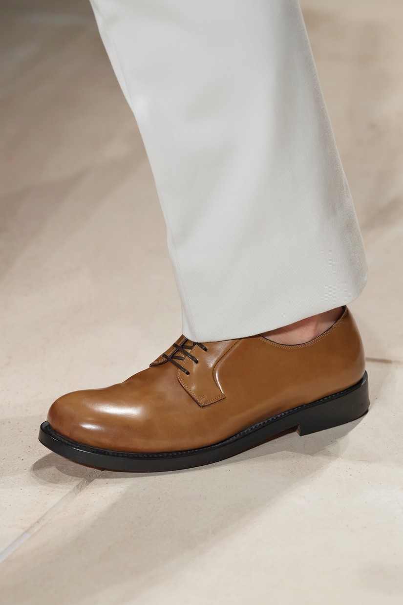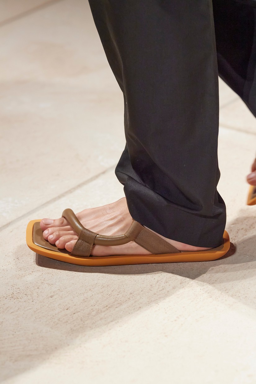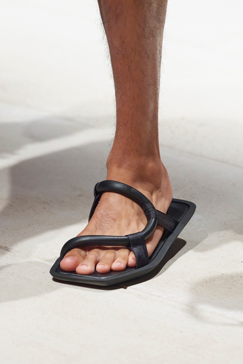 Uma nova sandália masculina é inspirada por um esboço de arquivo Ferragamo de uma forma de sapato com um único desenho arquitectônico, originalmente concebido para as mulheres. A clássica construção de sapatos Tramezza é reinventada através da subtração num mocassim reinterpretado e super macio.