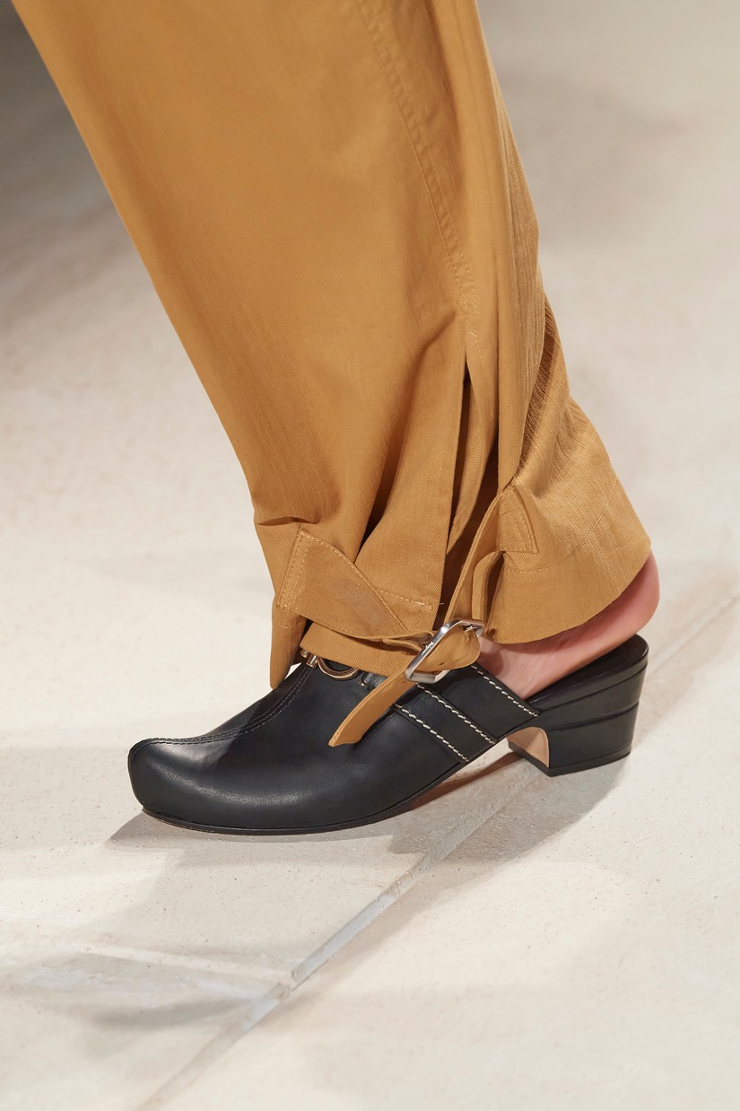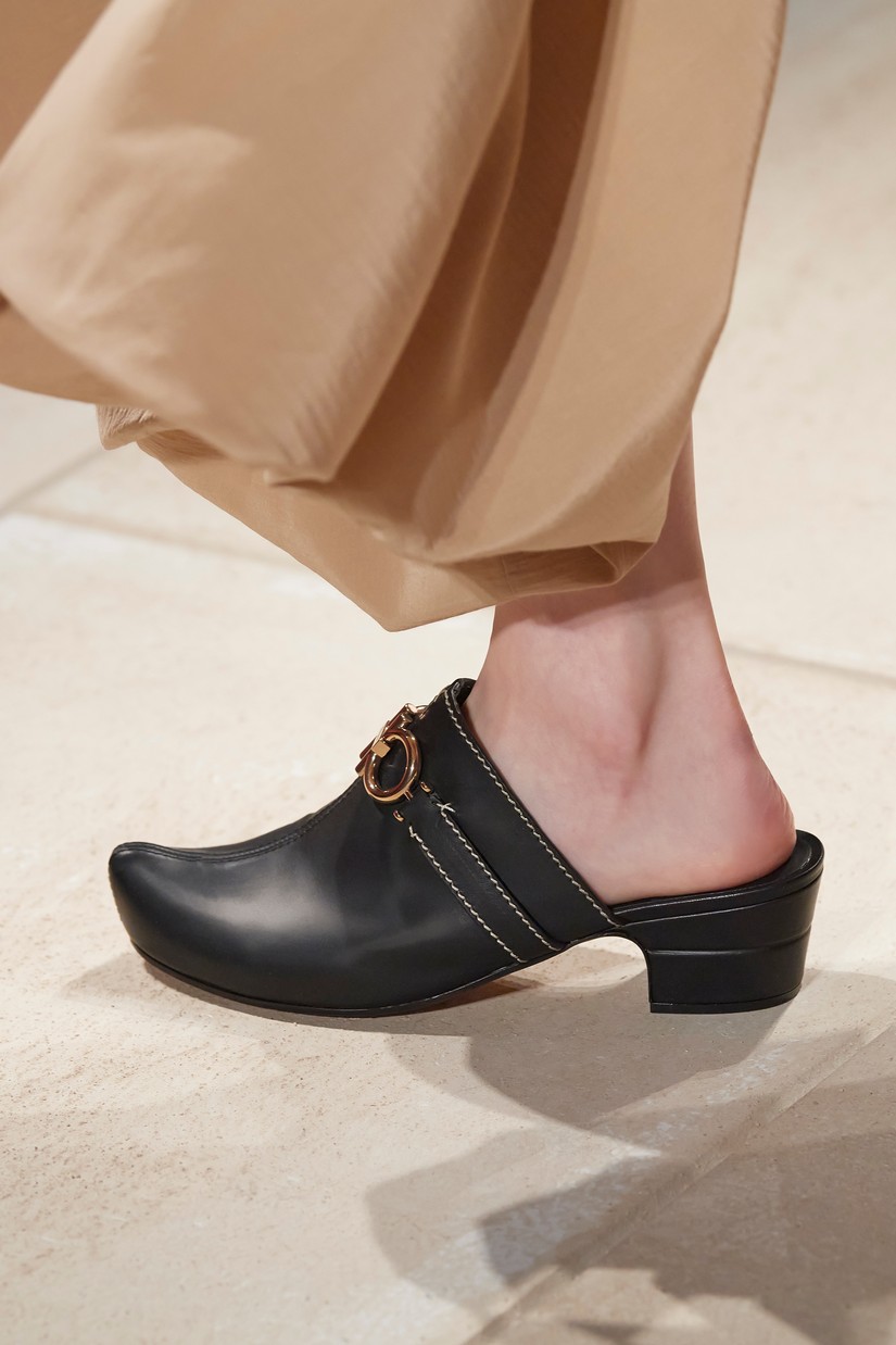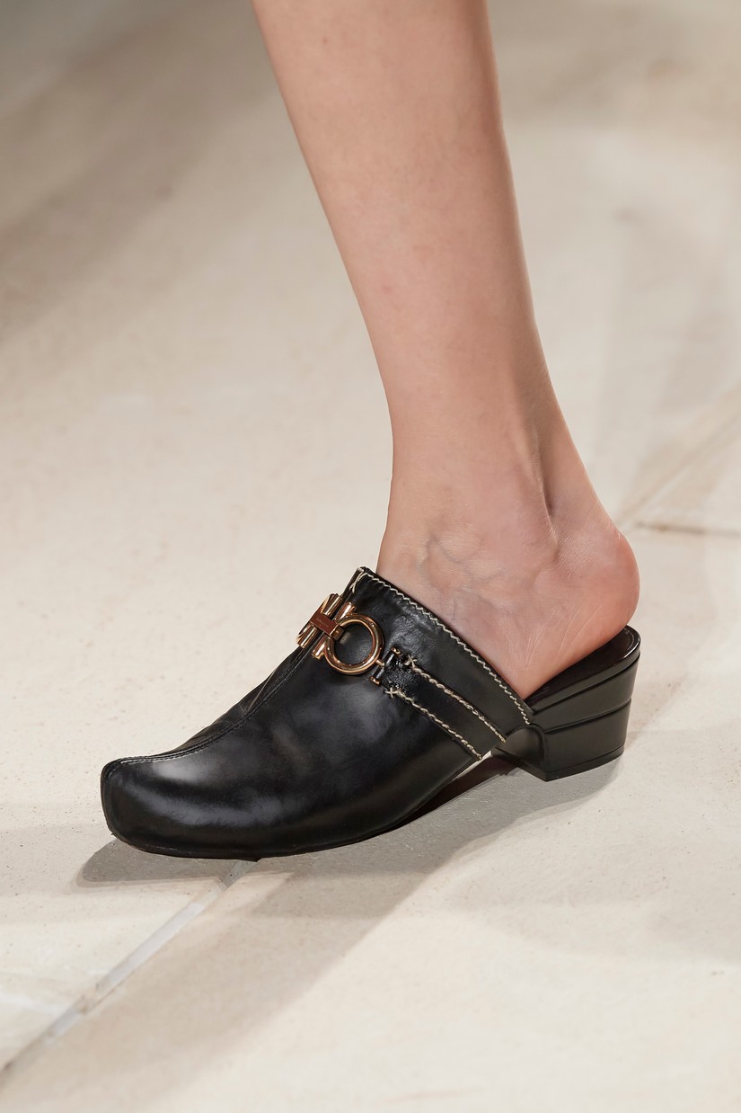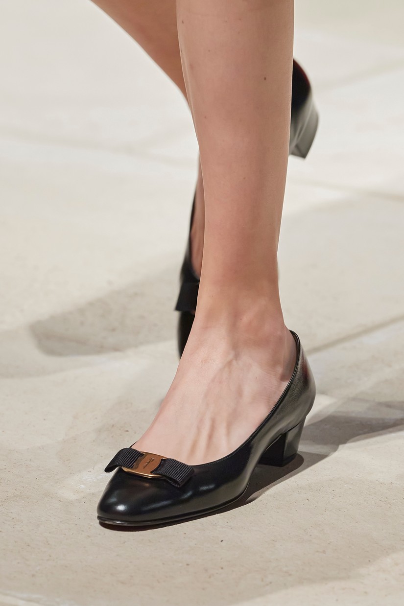 Os ícones Ferragamo, a Vara e a Varina, são reavivados e reimaginados em novas colorações e materiais, incluindo o rattan. Os clogs boêmios - uma mistura entre um tamanco holandês e designs de assinatura da Salvatore Ferragamo de inspiração oriental – com contrastantes lonas e cabedais de couro apresentam o histórico duplo Gancini. A parte superior de tecida à mão em mules flats e elevadas, recorda o design 'Invisibile' da Ferragamo – estas partes superiores de croché são combinadas com palmilhas e calcanhar ornamentados também à mão.