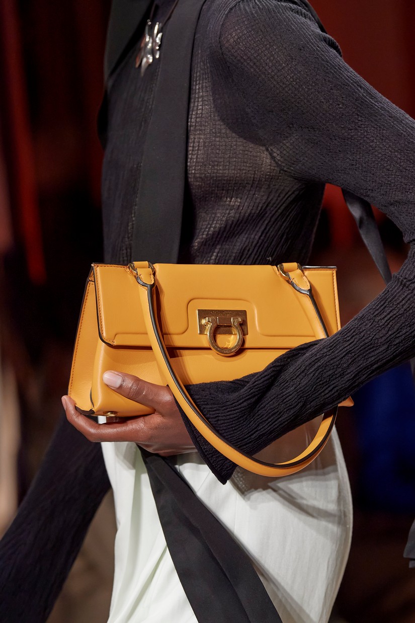 Os padrões do patrimônio estético da Ferragamo são intrínsecos ao tecido desta coleção. As formas clássicas dos sapatos Ferragamo - objetos de arte - são reproduzidas em joias de metal. O Gancini é tecido em cintos e detalhes tubulares. As formas clássicas da bolsa Ferragamo, incluindo a Studio Bag Ferragamo e a Trifolio, são reimaginadas em novas fabricações e tamanhos. Silhuetas de fontes vintage são reavivadas em novas proporções radicais e surpreendentes. Uma novíssima bolsa em pele de bezerro extremamente macia que pode ser usada transversalmente ao corpo ou na mão. Mais uma marca espetacular mostrou sua nova coleção na badalada semana de moda em Milão!
