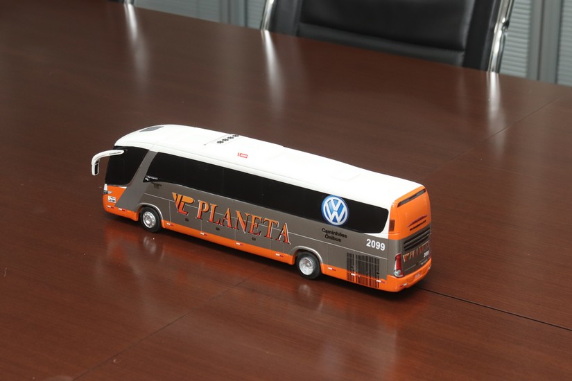 Uma surpresa e curiosidade bem legal foi encontrar sobre a mesa da sala de reuniões uma miniatura do ônibus da Viação Planeta, que faz parte do grupo empresarial da Autobahn. “Essa réplica aí sempre dá ciúmes quando recebemos os clientes” brincou Marcos Franco.