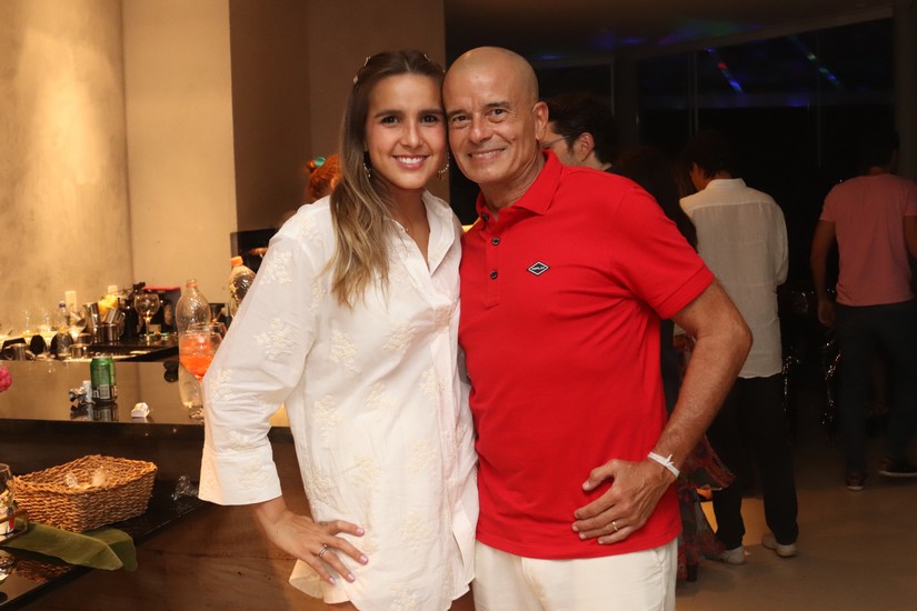 Logo na descida, em direção a área de lazer da deliciosa casa dos Matarazzo Falcão, esperava uma ansiosa e animada anfitriã. Fran usou um vestidinho curto (ela pode!) rosa choque de mangas bufantes. O lindo vestido foi inspirado num dos modelos da rainha Ivete Sangalo. Ela estava ao lado do maridão animado e festeiro, que nem ela, o querido Marcelo Matarazzo Falcão.
