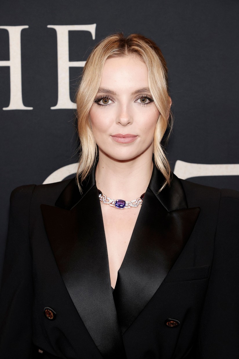 Jodie Comer escolheu para a noite, o colar Magnifica da alta joalheria da Bvlgari, em ouro rose com cinco pedras preciosas coloridas e almofadadas, diamantes e madrepérola, combinando com um par de brincos de diamantes. Uma noite de luxo, poder e vanities para ninguém botar defeito! Muita magia, muito encanto…
