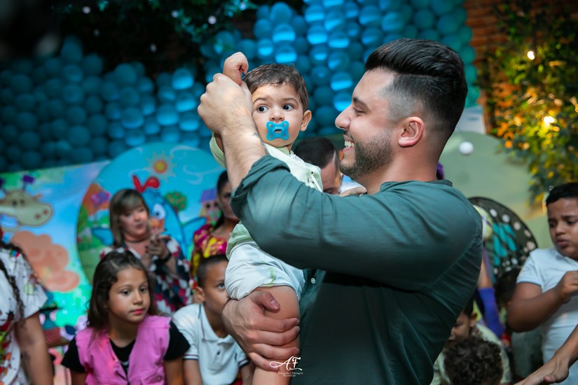 Sorridente, Léo se divertiu e brincou a festa inteira, interagindo com os personagens da Galinha Pintadinha, por quem o menino é apaixonado. Somente amigos próximos e familiares estiveram na comemoração. "Léo é muito esperto e alegre, difícil foi conseguir um tempinho com ele, porque o danado só quer saber de brincar", falou o tio Gustavo que desembarcou direto do Rio de Janeiro, onde gravou um programa de TV com seu parceiro Dom Vittor.