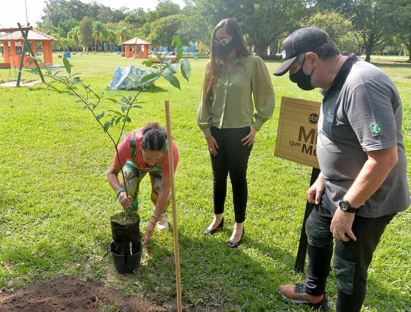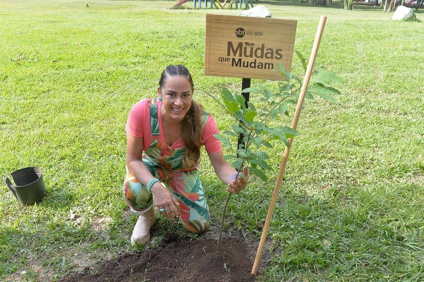 Dando sequência ao projeto “Carbono Zero - Mudas que Mudam”, a embaixadora Silvia Abravanel esteve nesta segunda-feira, 7 de março, no Parque Ecológico do Tietê, situado na zona leste da cidade de São Paulo, para participar de mais uma fase do plantio de cerca de 280 espécies de mudas nativas. O projeto é fruto de uma parceria entre o SBT do Bem, plataforma de responsabilidade social da emissora, e a GeoSustent, empresa de engenharia e consultoria ambiental.